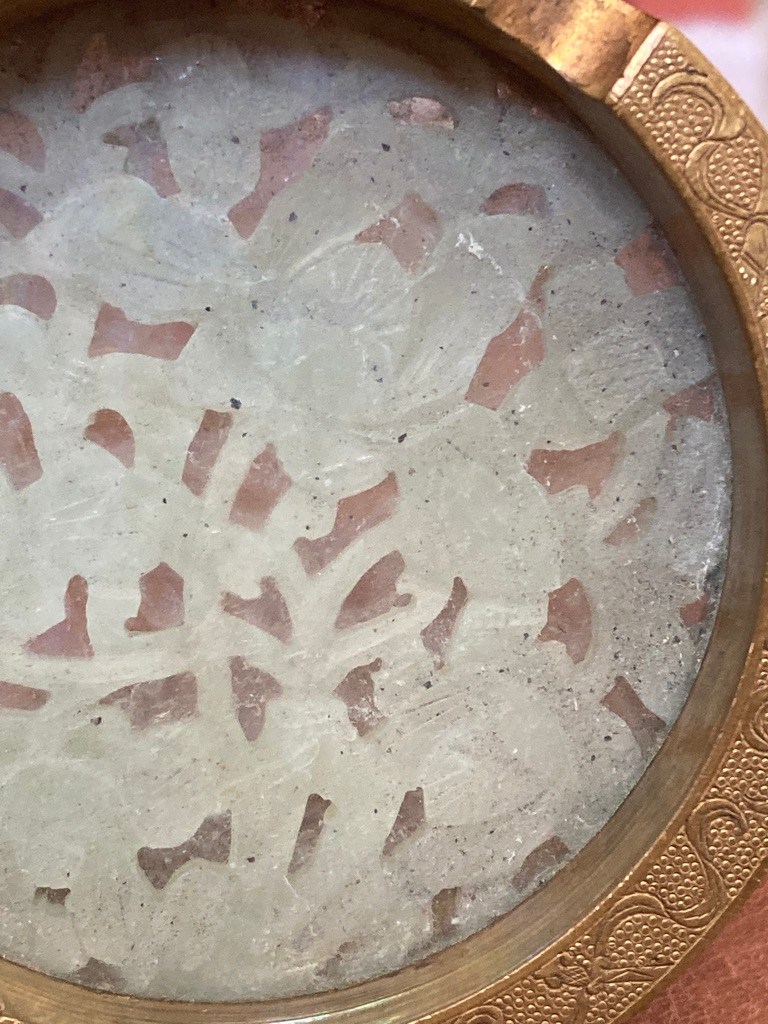 vintage soap stone in brass ring