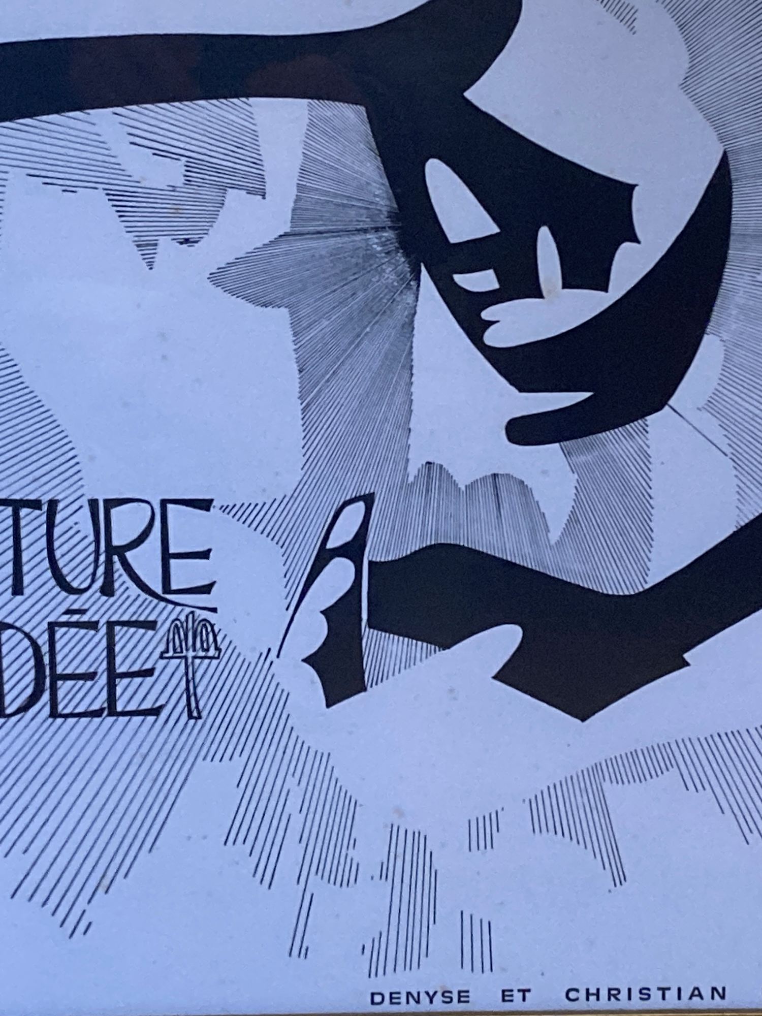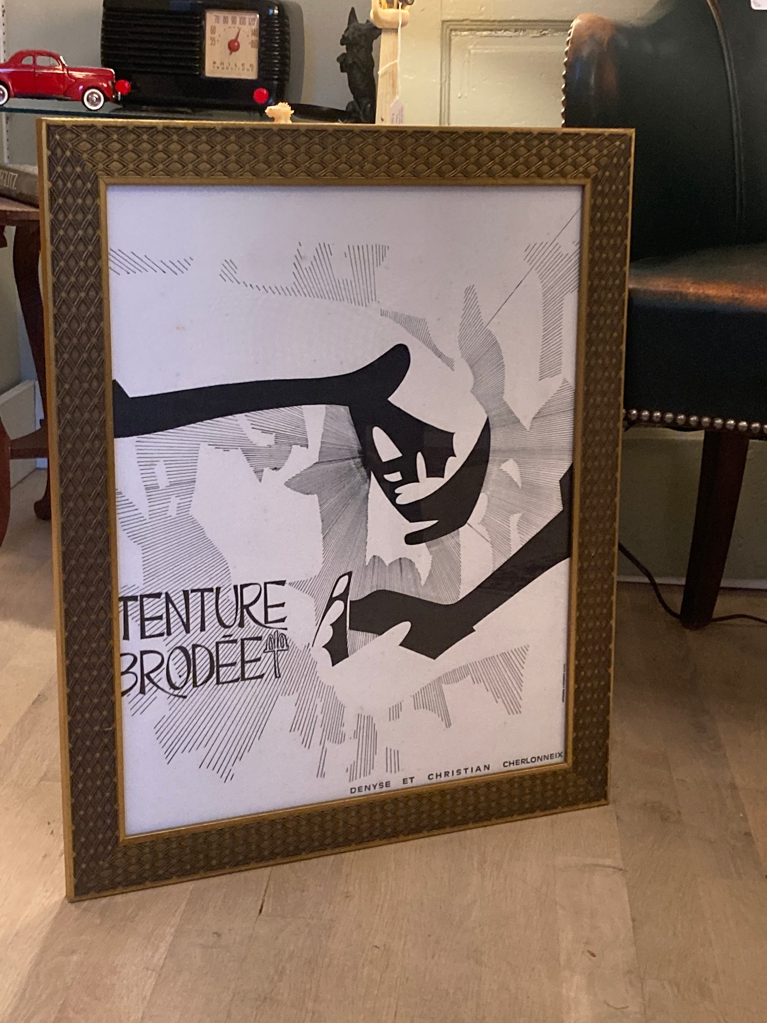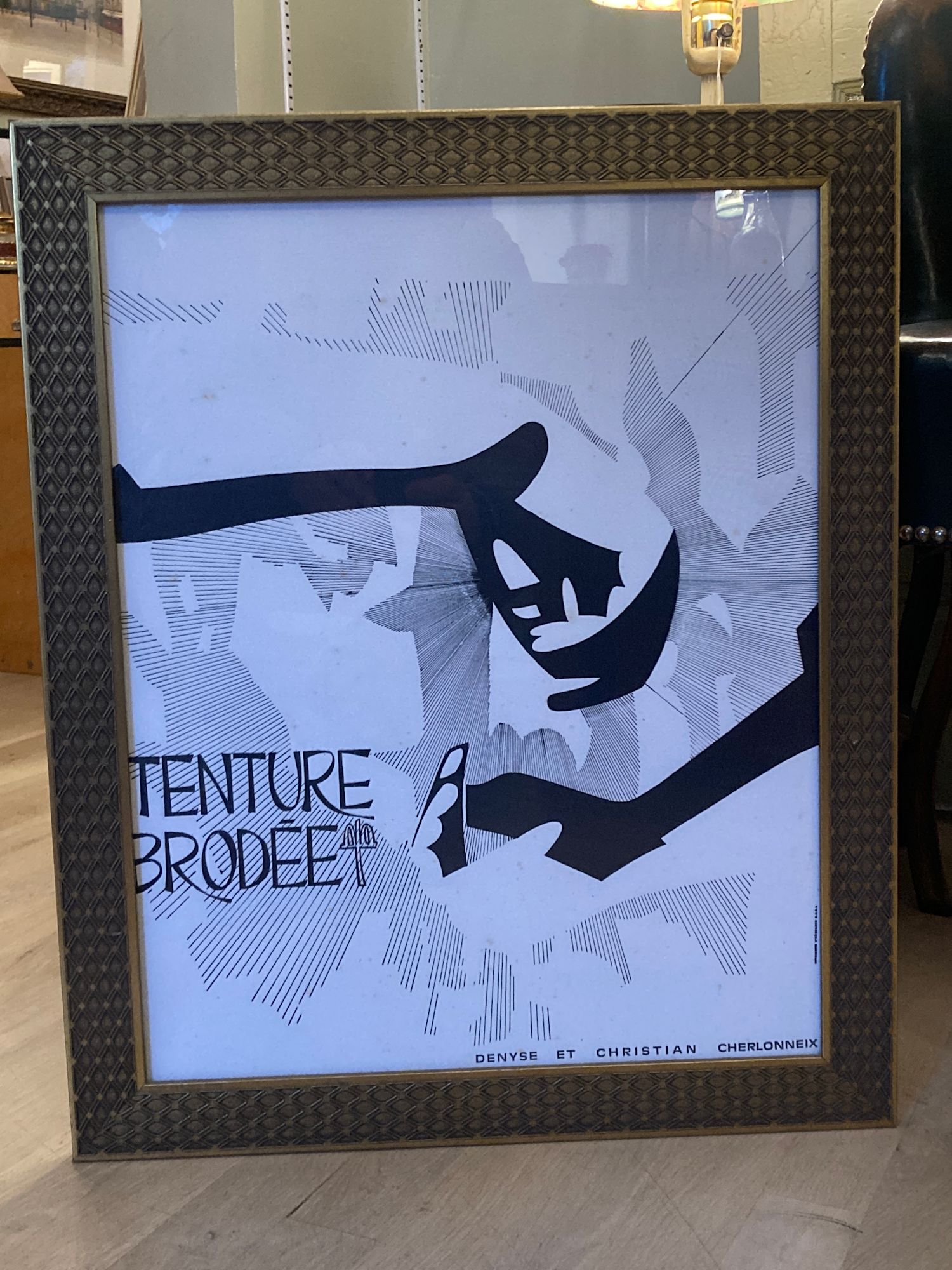 Vintage Tenture Brodée black and white French poster (embroidered hanging)
