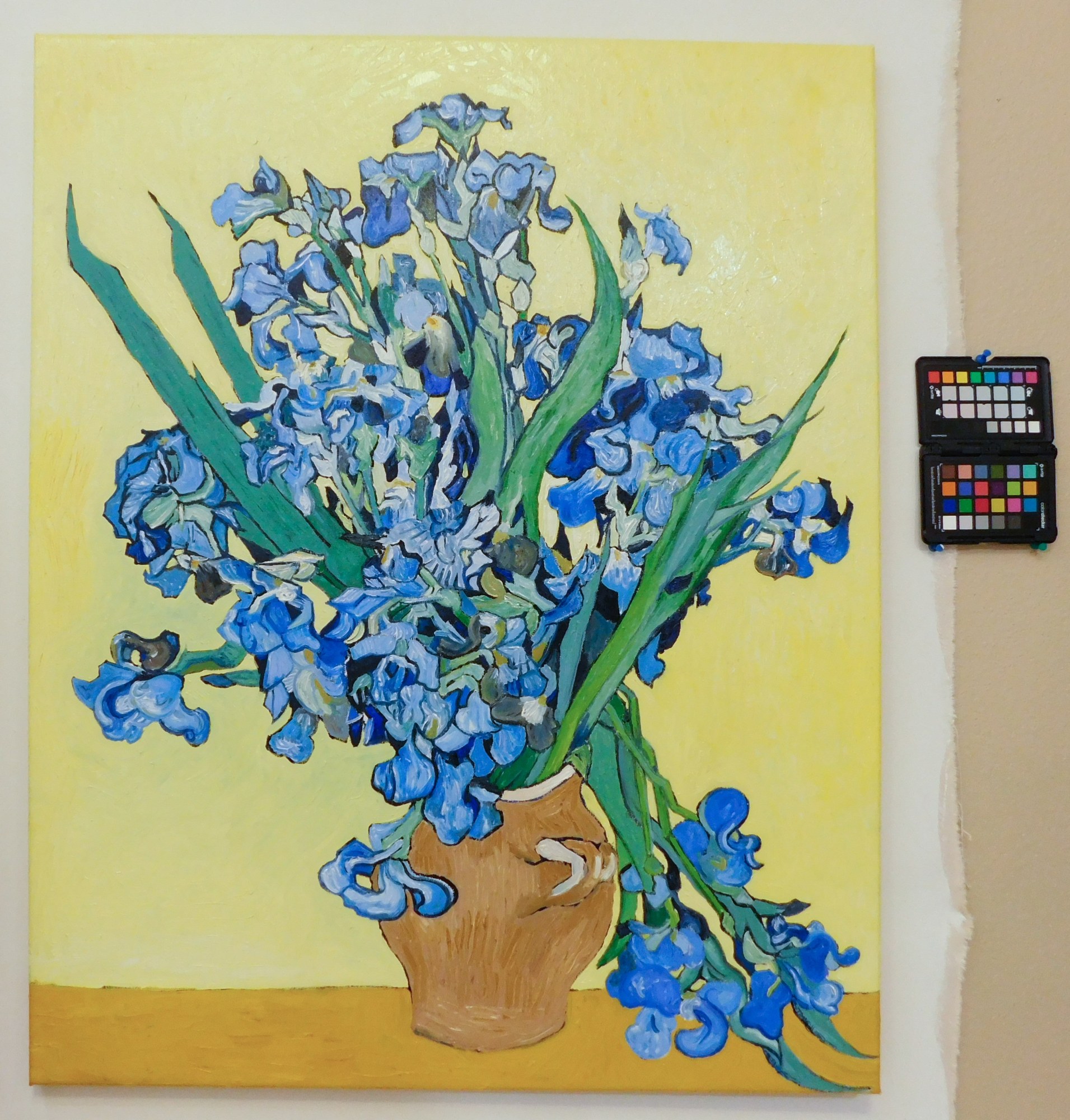 Reproduction of Vincent Van Gogh's Vase With Irises Against A Yellow Background. Commissioned.