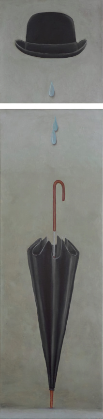 In the flavor of Magritte, a diptych to hang in your entryway.