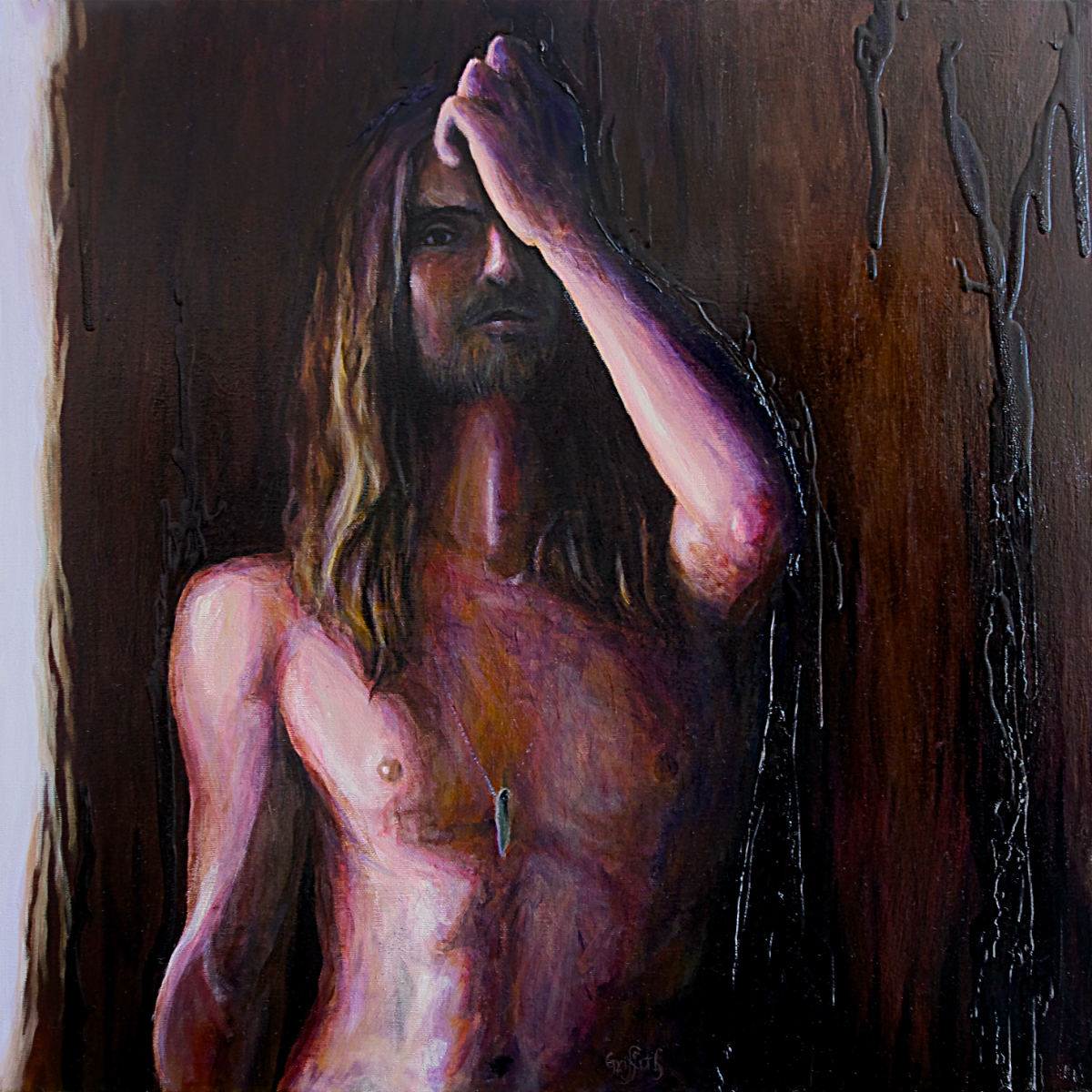 I put my heart and soul into all my paintings, but not the same time. Most take many months... but some take just 3 weeks! Here is what I created in the past month. [subtitled-> "Sixth Avenue Heartache" {'the same black line that was drawn on you was drawn on me'}] His eye stairs directly at you.