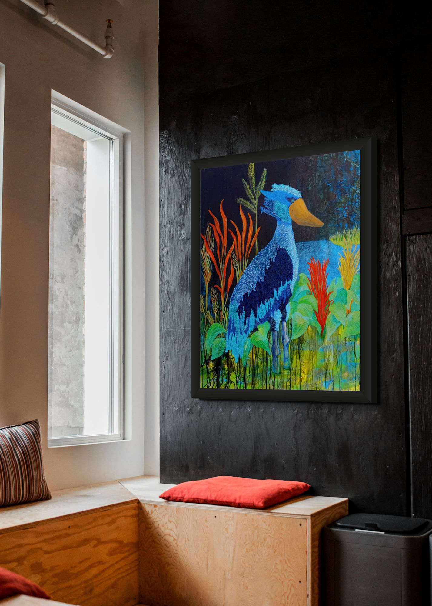 Fleeting Utopia shines a light on shoebills: a call to witness both their strength and fragility, and a reminder that conservation efforts must be ongoing if species like these are to endure. The title alludes to the rapid disappearance of their habitat—an attempt to capture and immortalize an idyllic moment before it fades. My use of color honors their swampy freshwater habitats across parts of Africa—a vibrant continent layered with ancient traditions and rich cultural lineages.