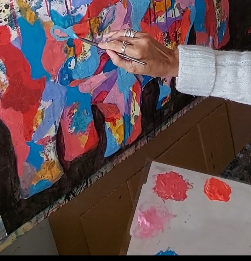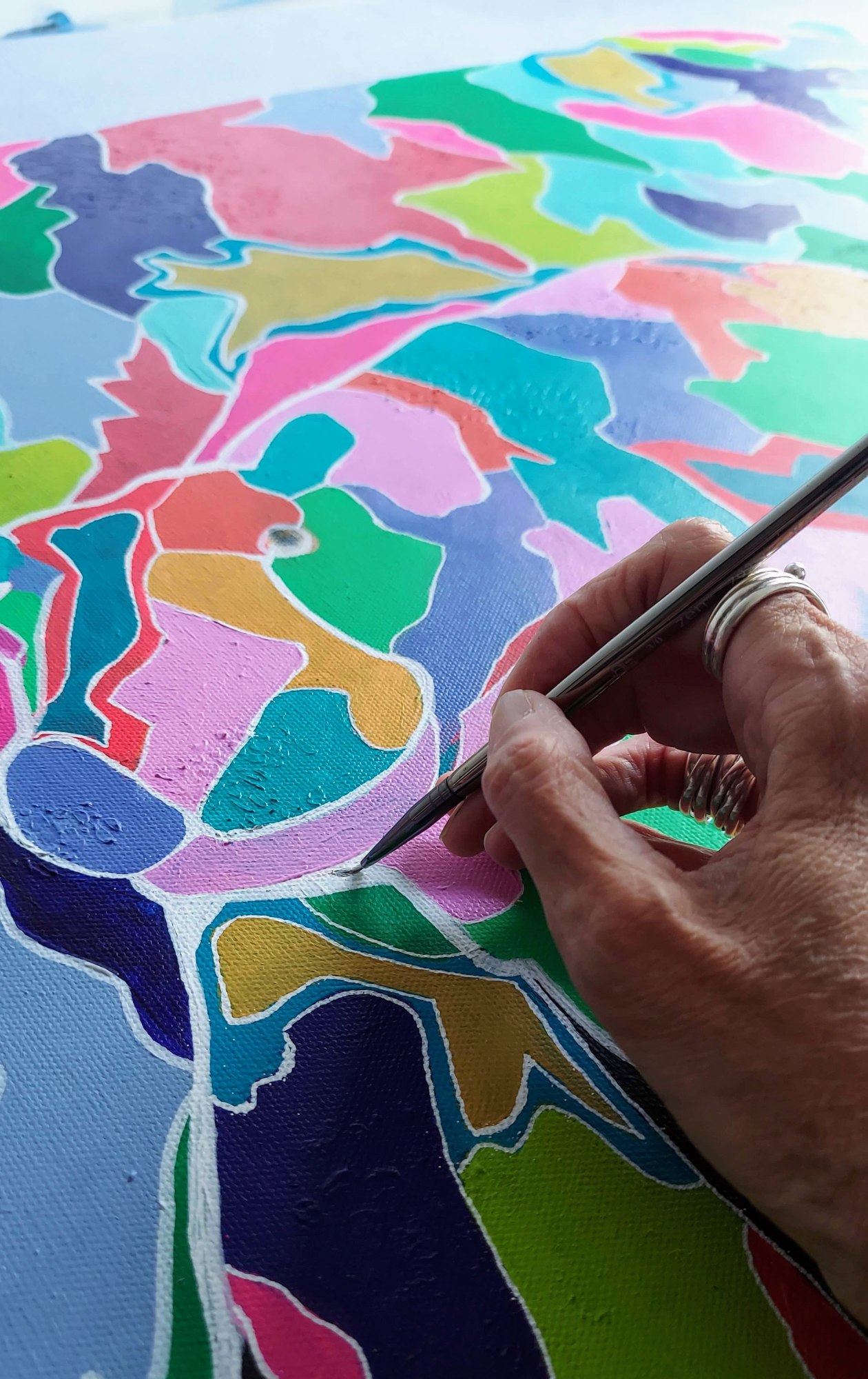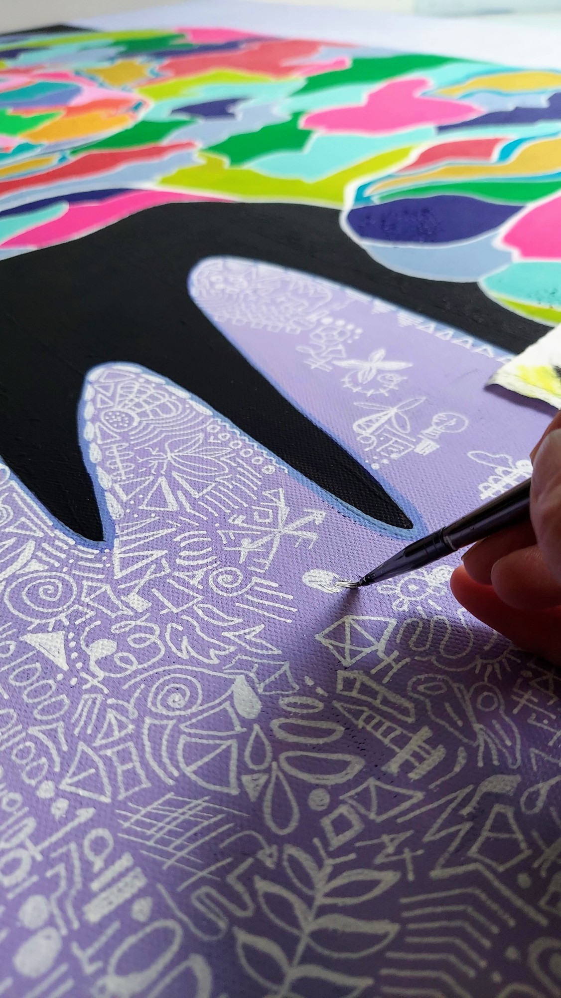 As with much of my work, the final process involves carefully placing symbols that intersect cultures, objects, and moments in time. These clusters are my way of searching for balance—within the piece and within myself—amidst a chaotic world. It becomes a visual prayer, distilling complexity into a hopeful narrative of harmony and connection.