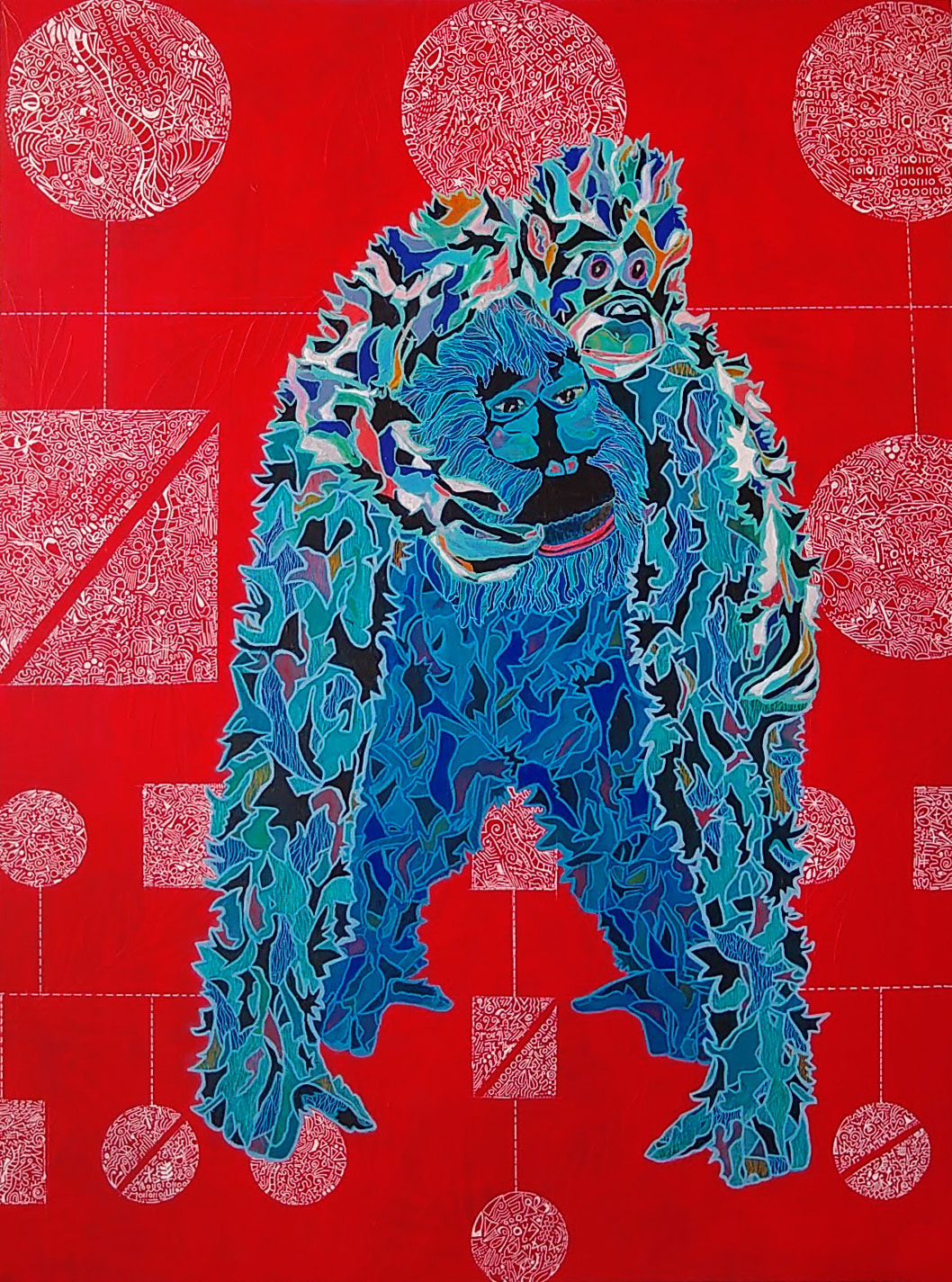 In its final stages, the artwork involves meticulously organizing symbols that intersect cultures, objects, and events. These clusters represent a quest for balance in both the artwork and my own mind amidst global challenges. It serves as a symbolic journey, distilling the complexities of our world into a hopeful narrative that celebrates harmony and connection.