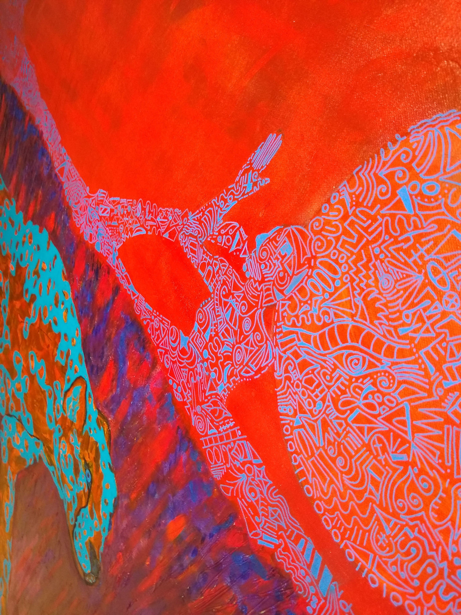 The final process of completing my work often involves meticulously organizing symbols that intersect cultures, objects, and events. These clusters represent a quest for balance within both the artwork and my mind amidst global challenges. It is a symbolic journey or a form of universal prayer I embark on to distill the complexities of our world into a hopeful narrative that celebrates harmony and connection.