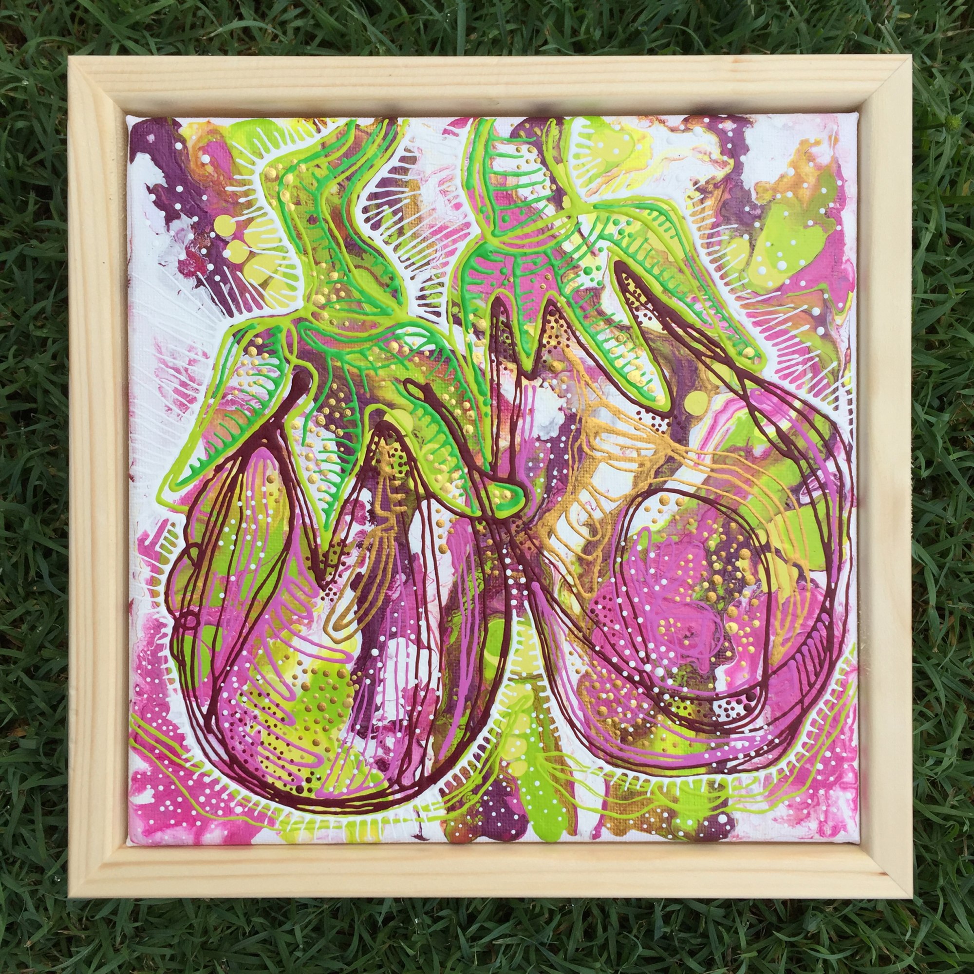This artwork is the last in the Fruit and Vege collection - a series of paintings I created that would look great in or near your kitchen. Eggplant even comes in it own timber frame, all you have to do is hang it