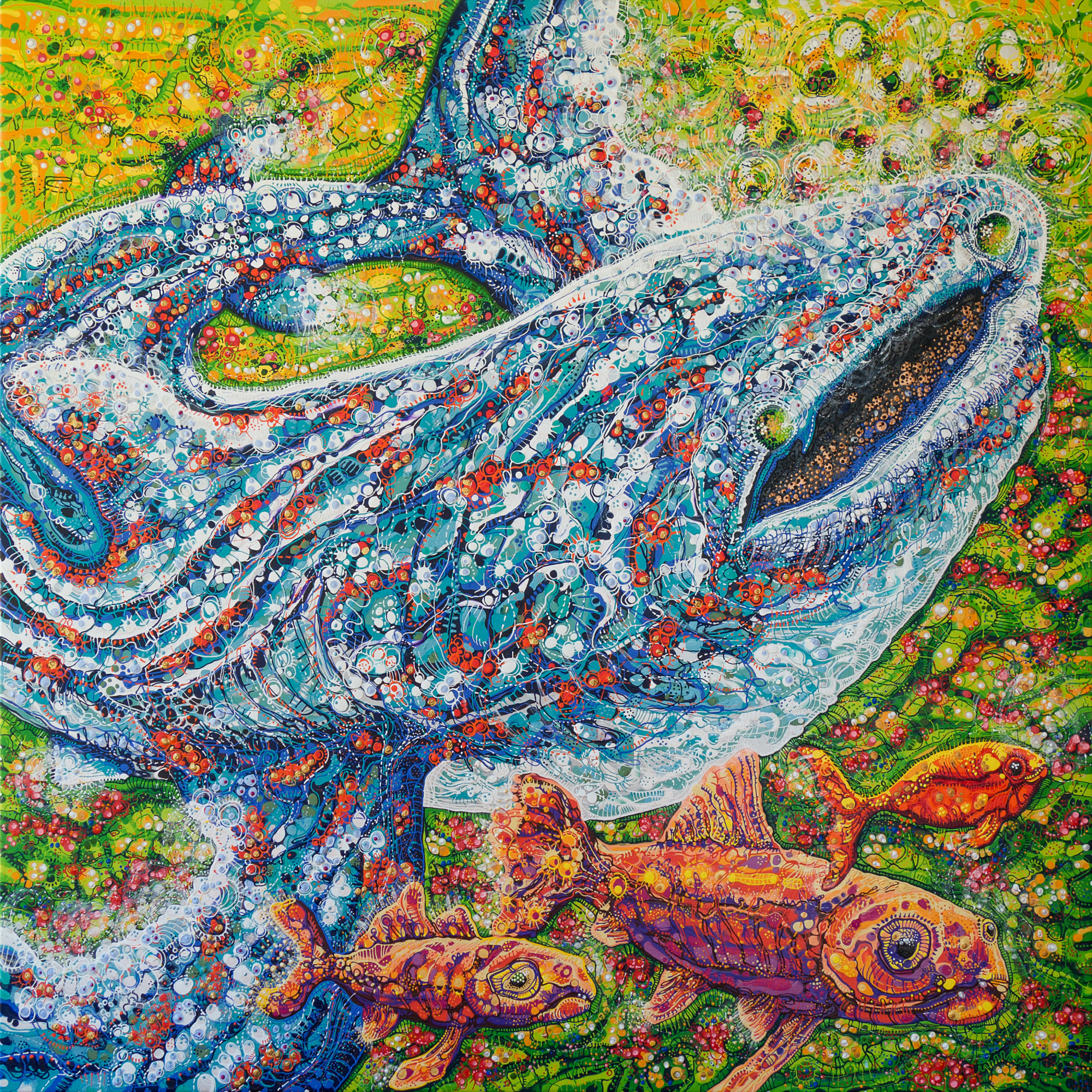 My studio is in a bush setting and I am surrounded by large trees and several times a day white cockatoos fly over screeching to their mates. They like to hang around and make a lot of ruckus which makes me smile. Whilst I am inspired by these birds, my cockatoo Candice isn't a regular white cockatoo, she is full of colour and swirls of thick paint. Her feathers are made up of aqua, pink, lime green and magenta. On the top of her head, are fiery flames of reds, golds, oranges and yellows.