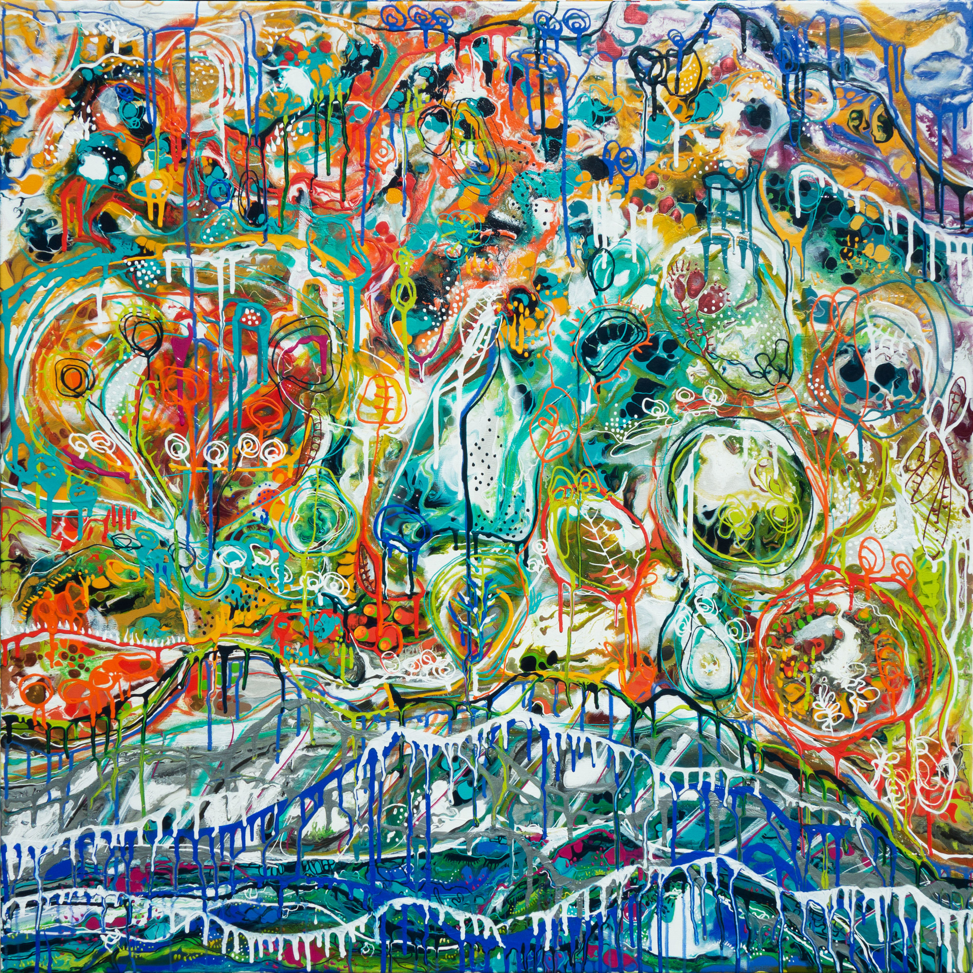 I love my public library. Especially when they have a ‘fill a bag’ for $5. I am able to pick up some amazing non-fiction books about Australia and other places around the globe. The visual inspiration for ‘Mount Field National Park’ was from one of these books. Whilst my painting is not a realistic representation, the shapes and textures are taken from this alpine Tasmanian landscape. The flowing lines at the bottom capture the movement of the rock pool, the vertical lines are the bare trees and the musty purples at the top are the mists over the top of the mountain.