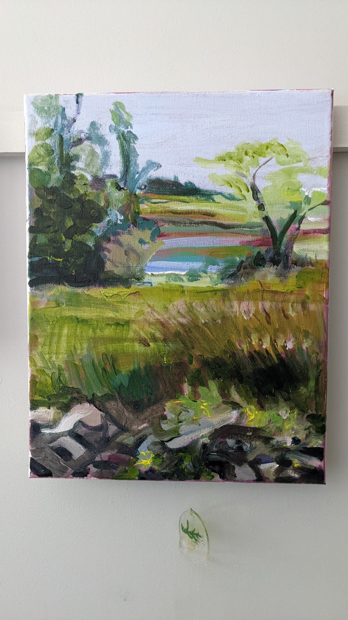 Be still and watch the grasses wave, the birds fly and the water sparkle. Full your heart up with beauty. Painted at the Essex Greenway reserve on an extra sunny day with bird song and butterflies.