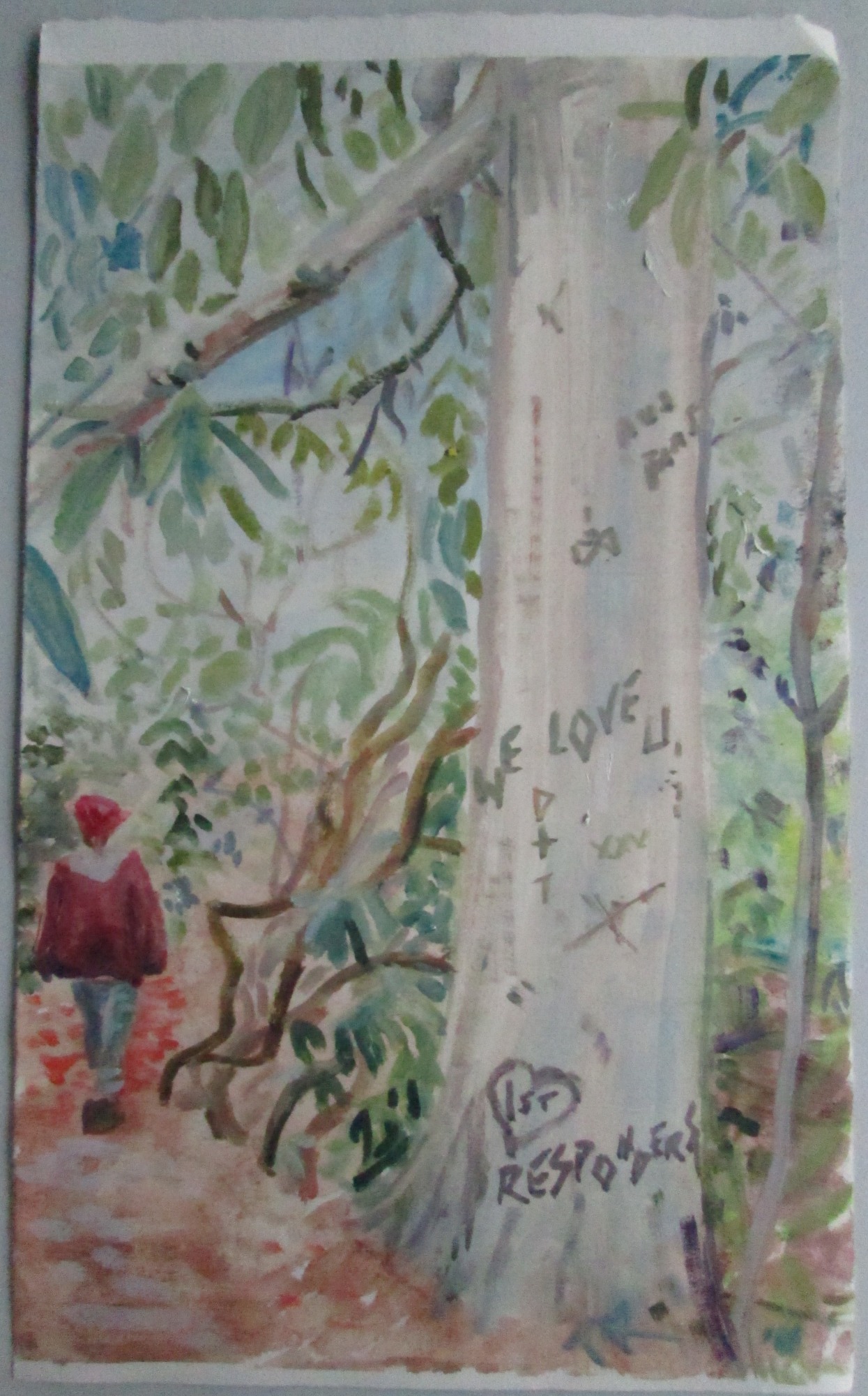 This piece was made after a walk with my family though the beautiful rhododendron groves at Maudslay State Park. It's oil on primed hand-made paper.