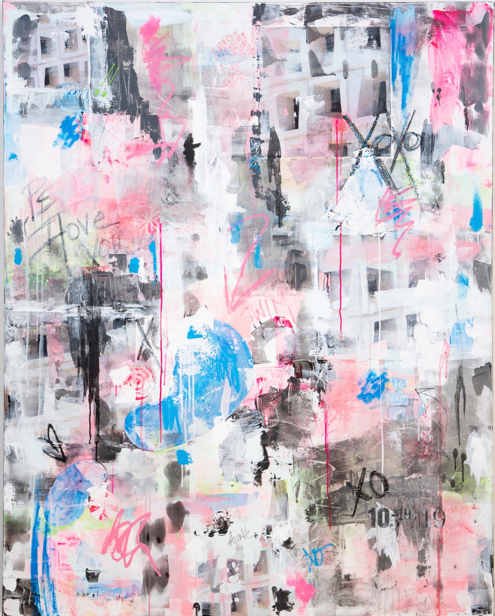 This large scale work brings me so much happiness. It is inspired by warm days spent on Spring Break in Palm Springs and Coachella Valley in Southern California. If you look closely you'll find roadsigns to find your way there.
