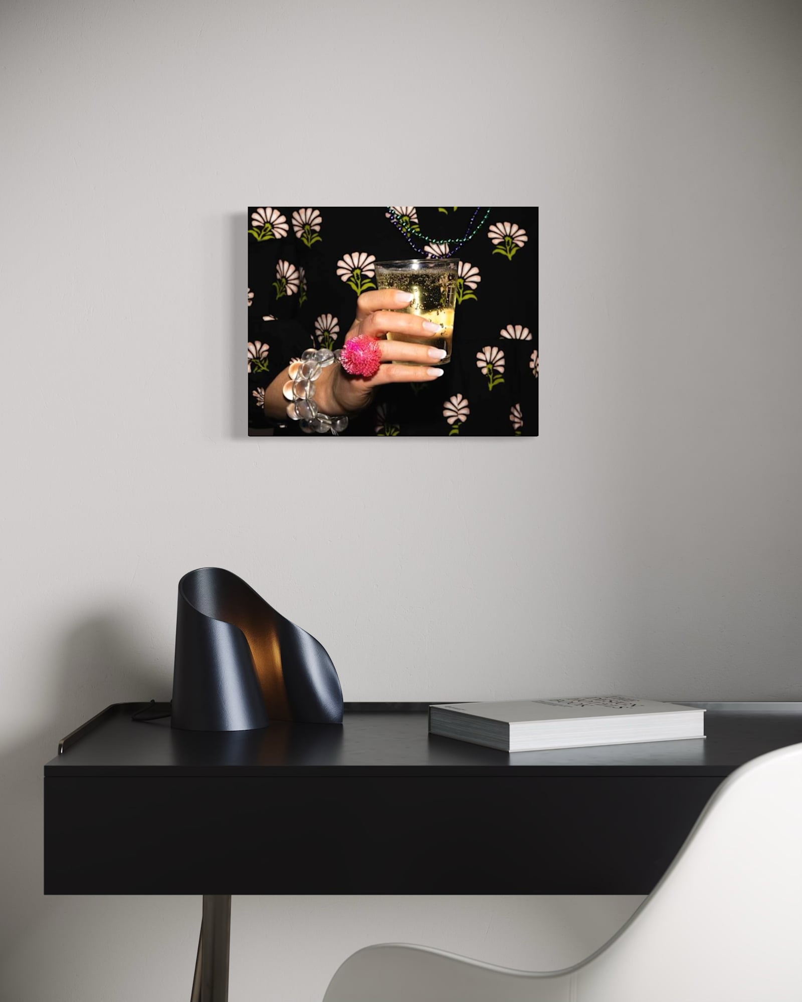 Although these are individual images and can stand on their own, I see them as a group having "small talk" in conversation with each other. Collected at weddings, bar mitzvahs, and milestone celebrations, these images capture the gestures and glimmer that orbit around the edges of social ritual. Held drinks, layered textures, costume jewelry, and clutched purses become stand-ins for performance, intimacy, and pause. This is a study of detail and desire- of what we carry, show, or grip when we’re seen. *if purchased together as a tryptic the price is $3,600.