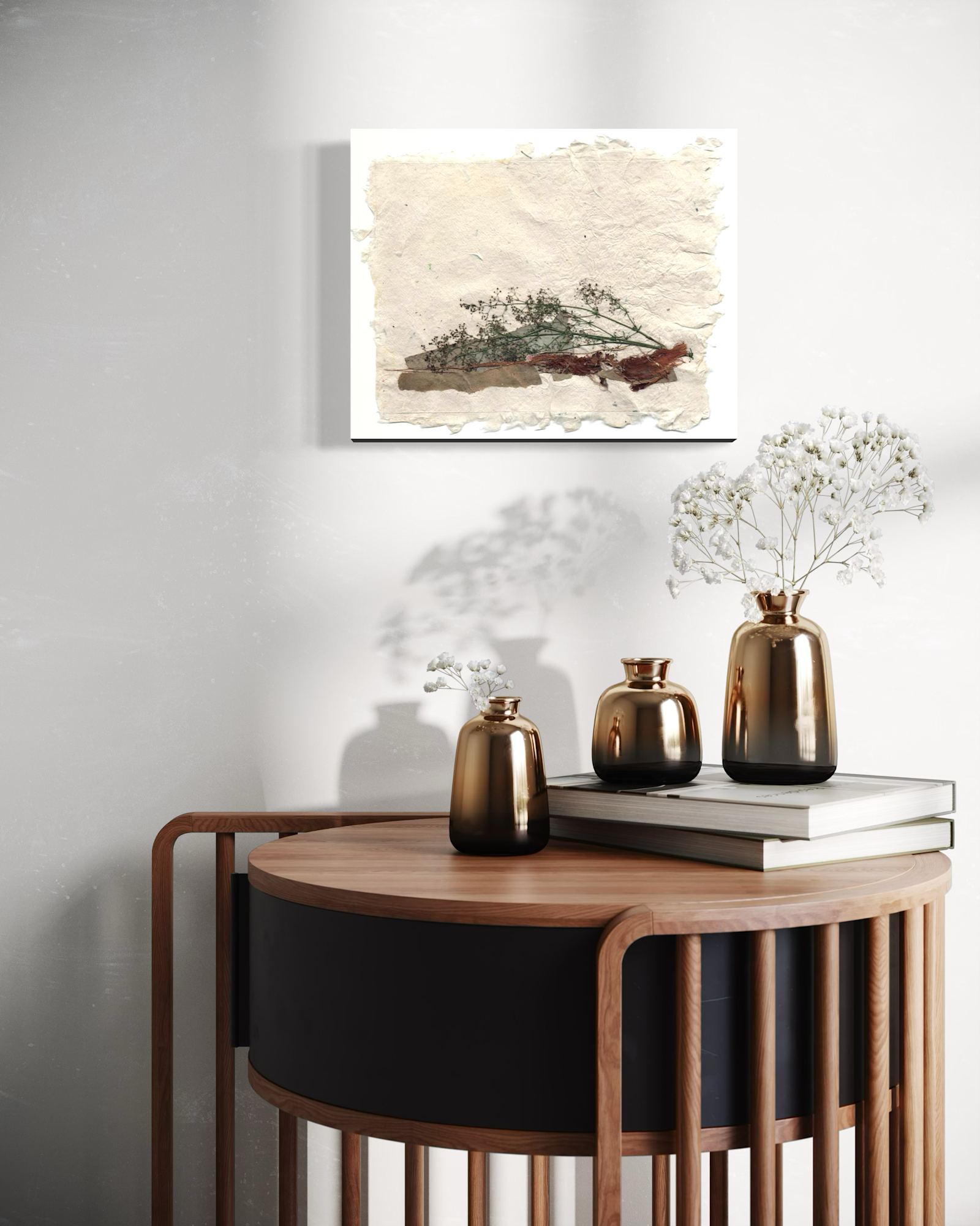 handmade recycled paper with dried plant material