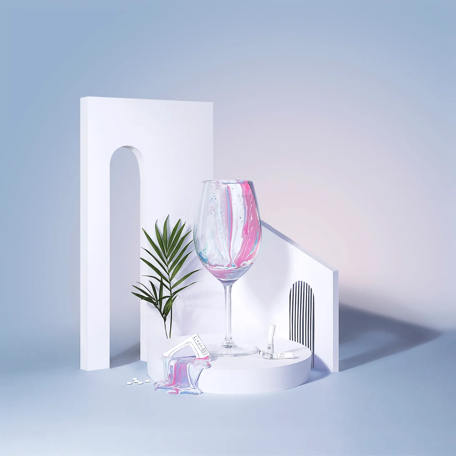 One example of turning tired old imagery into refreshingly new content would be an installation photograph titled Alison by Olga S. Ortiz. The work takes the old artform of still life and literally turns the subjects into installations. Instead of just portraying a still life of a wine glass or architectural elements, Olga combines the two making the vessel appear gigantic, pours hallucinogenic colors to drip from the glass which metaphorically leads to a miniature television melting in globs of pink and purple paint. Complete with a fern and bright pastel colors, the photograph conveys New Wave aesthetics and communicates the notion of relaxing, sipping on a glass of wine inside an open interior while watching the decadent television melt away before our very eyes. The work communicates so much just by altering the relationships of objects between each other. Had she just set up a still life with a wine glass and other similar objects, the piece would have no distinct meaning from centuries of applied still life art.
