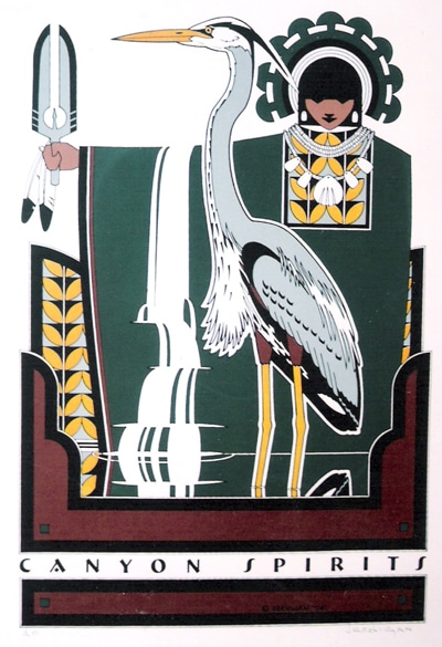 Among most Native American tribes all important plants and animals, as well as forces of nature like wind and rain, have their own distinct spirits. Often these spirits can manifest in human form – a process called transfiguration. Each print in the Canyon Spirits series has a generalized human figure that can represent a particular plant or animal.