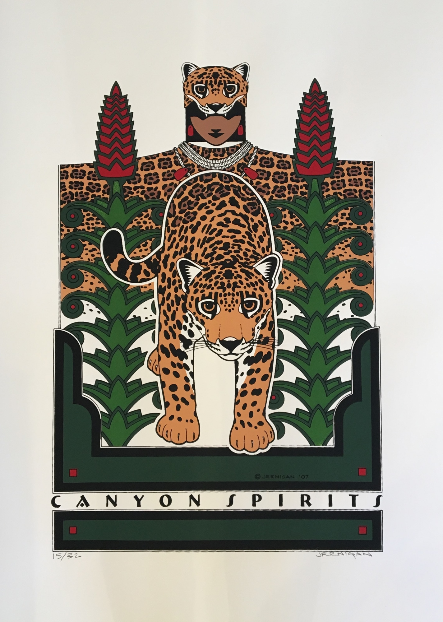 Among most Native American tribes all important plants and animals, as well as forces of nature like wind and rain, have their own distinct spirits. Often these spirits can manifest in human form – a process called transfiguration. Each print in the Canyon Spirits series has a generalized human figure that can represent a particular plant or animal.