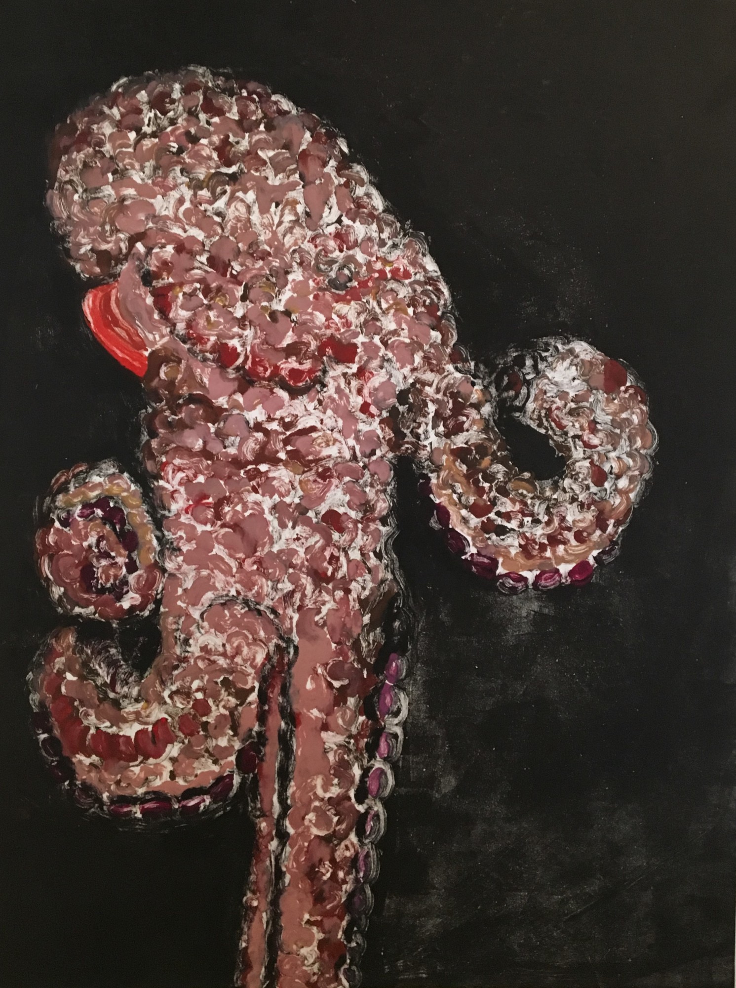 David Andres is the Director of the Louis Carlos Bernal Gallery at Pima Community College. To make this monotype, he photographed images while scuba diving in the Sea of Cortez north of San Carlos, Mexico. He made contour drawings from the photographs, then applied oil ink on a Plexiglass plate that he ran through a press.