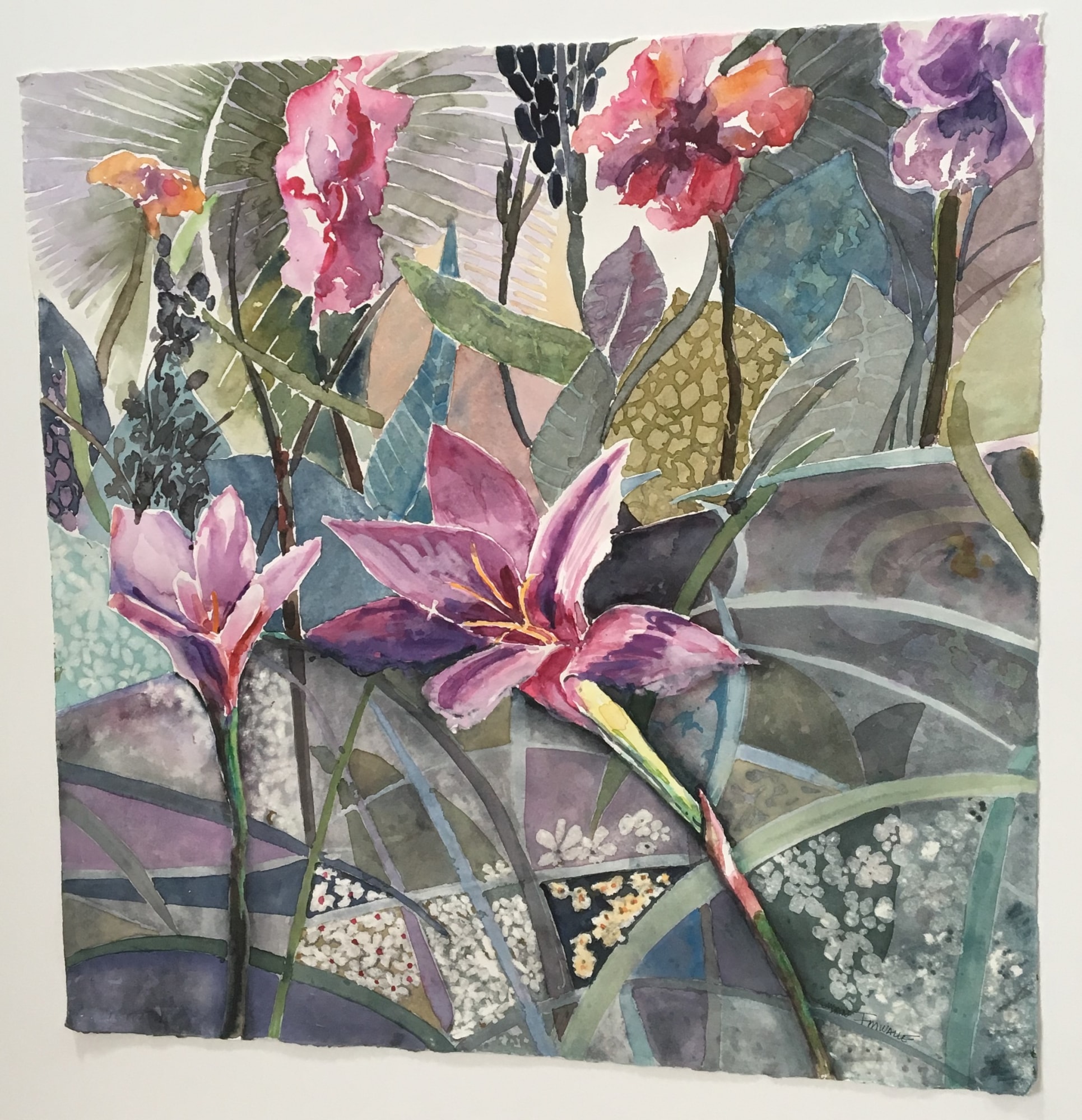 Susan Imwalle's floral works have a Japanese quality of layered beauty in a flattened plane.