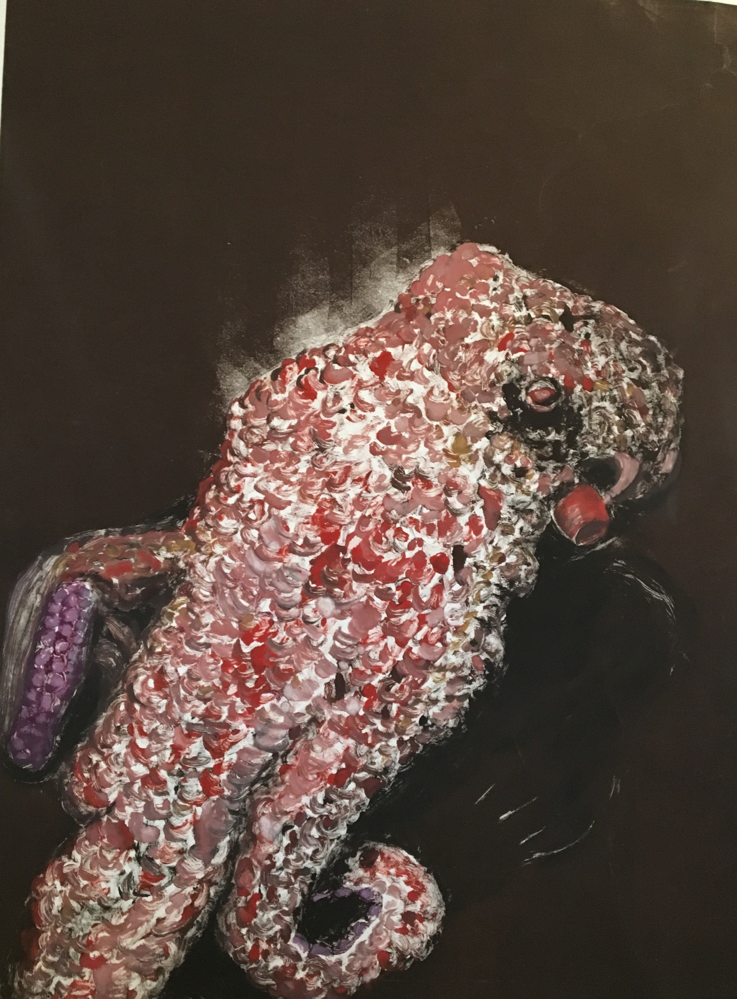 David Andres is the Director of the Louis Carlos Bernal Gallery at Pima Community College. To make this monotype, he photographed images while scuba diving in the Sea of Cortez north of San Carlos, Mexico. He made contour drawings from the photographs, then applied oil ink on a Plexiglass plate that he ran through a press.