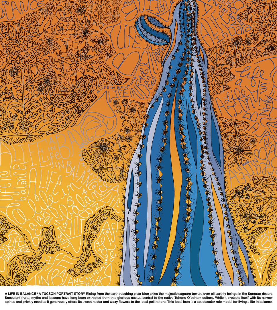 A Tucson Portrait Story is a collection of drawings depicting people, places, and events that make Tucson extraordinary. These include Tucson icons – like Gates Pass, El Tour de Tucson and monsoon rains – along with insightful portraits of Tucson’s diverse population, from street musicians to salsa makers.