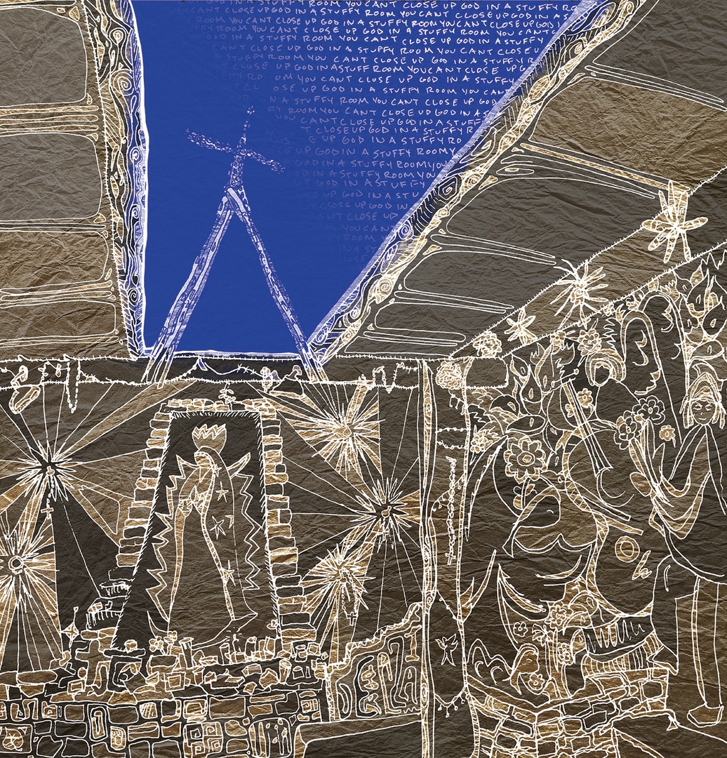- hand drawing with micron pens, photography and digital color on brushed aluminum