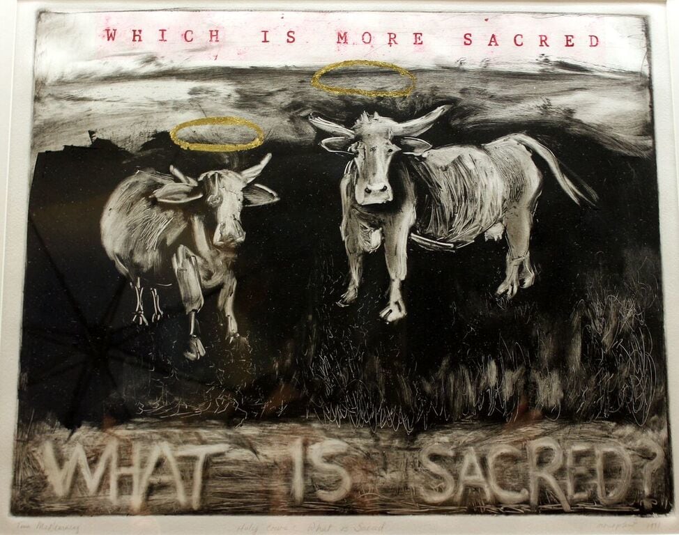 Christina McNearney teaches art at Pima Community College. This monoprint asks us to look at the beliefs and values we hold dear - the "scared cows" in our lives - and check-in to see if they're still valid.