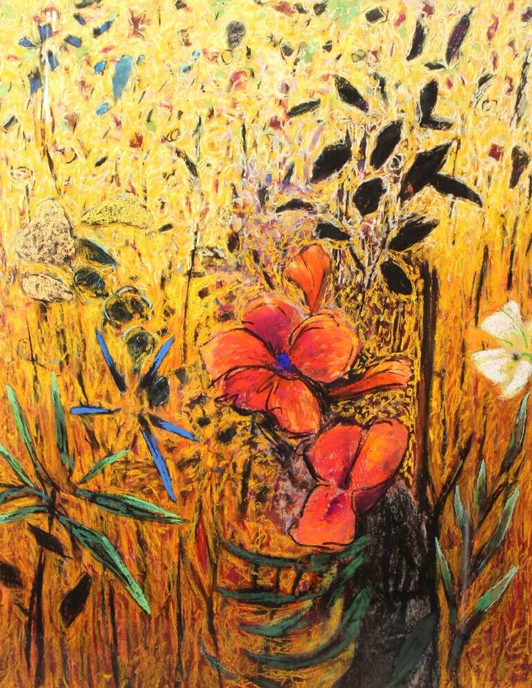 This pastel was originally shown in the 1994 "Tucson Collects" exhibition at the Tucson Museum of Art. It is the centerpiece of the series of Jim Waid pastels in the Hall of Giving.