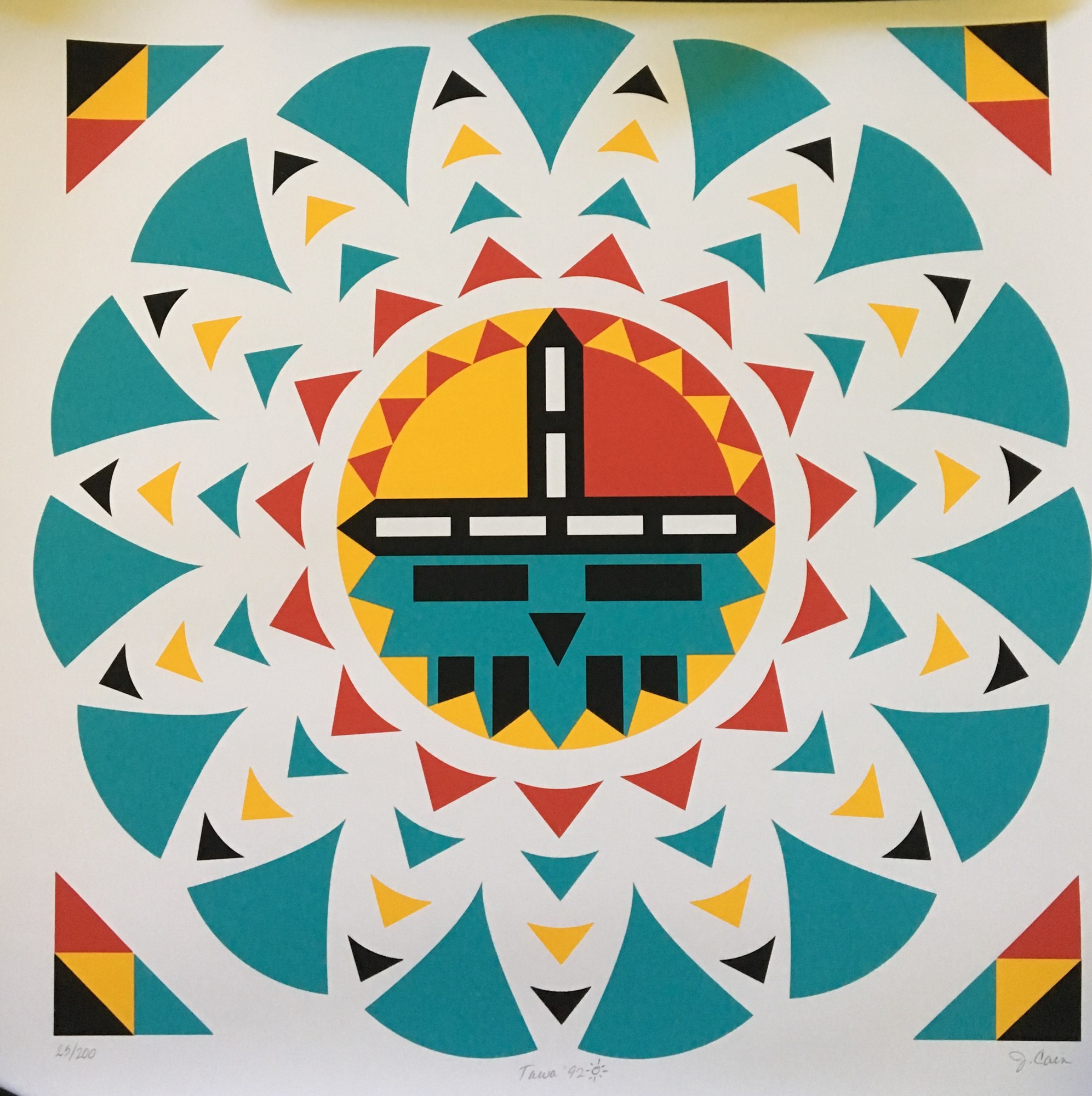 This print was part of a series created by Morgan-Cain & Associates. They were given to friends and family every year to celebrate the company’s success. Tawa is a loose interpretation of the Hopi Indian Sun kachina doll.