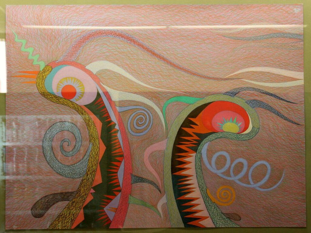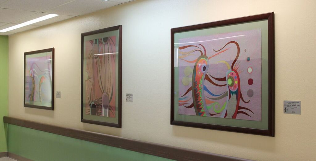 The artist was part of the Chicago Imagists group, a school of fantasy-based artists working in the 1960s and after. These works are located near the hallway to Pediatrics.