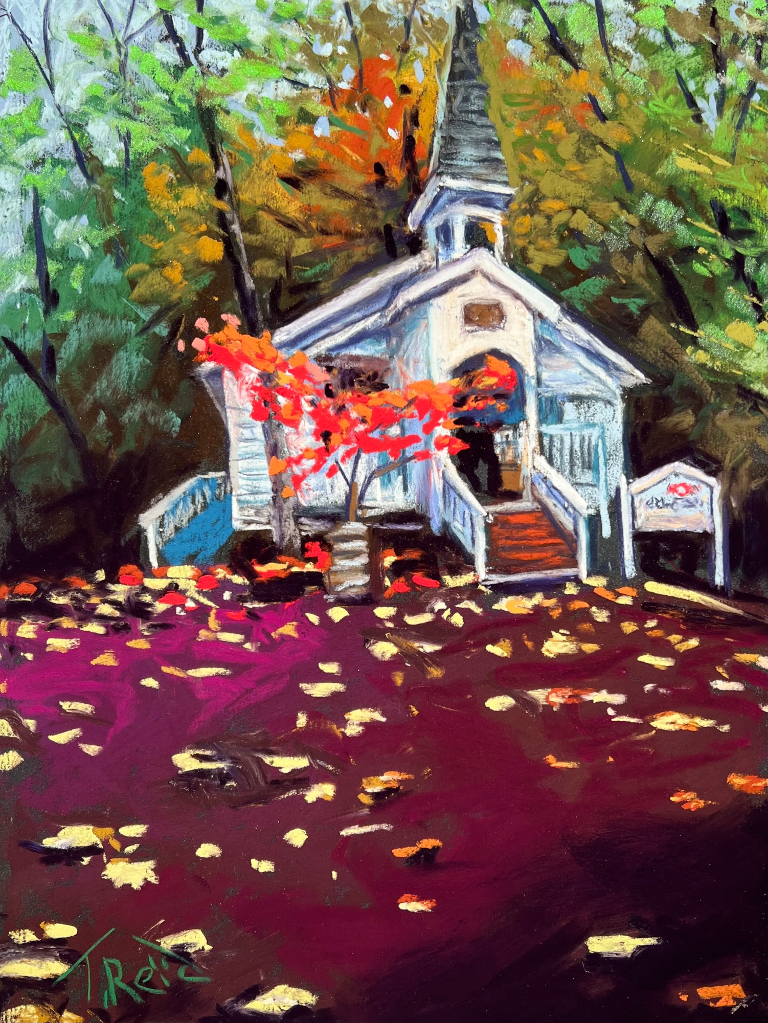 Ludwig and Blue Earth pastel on UArt black 400 paper Commission- copy first Mountain Church