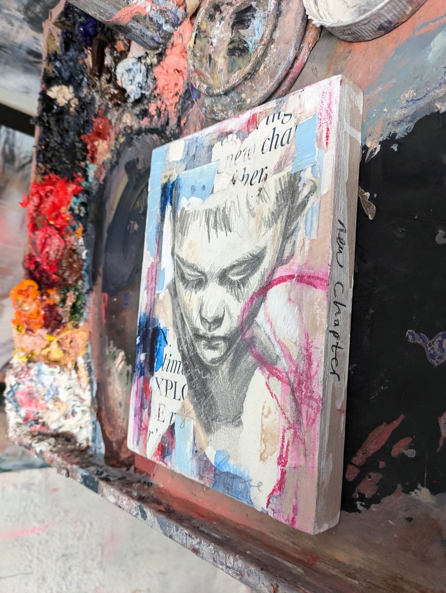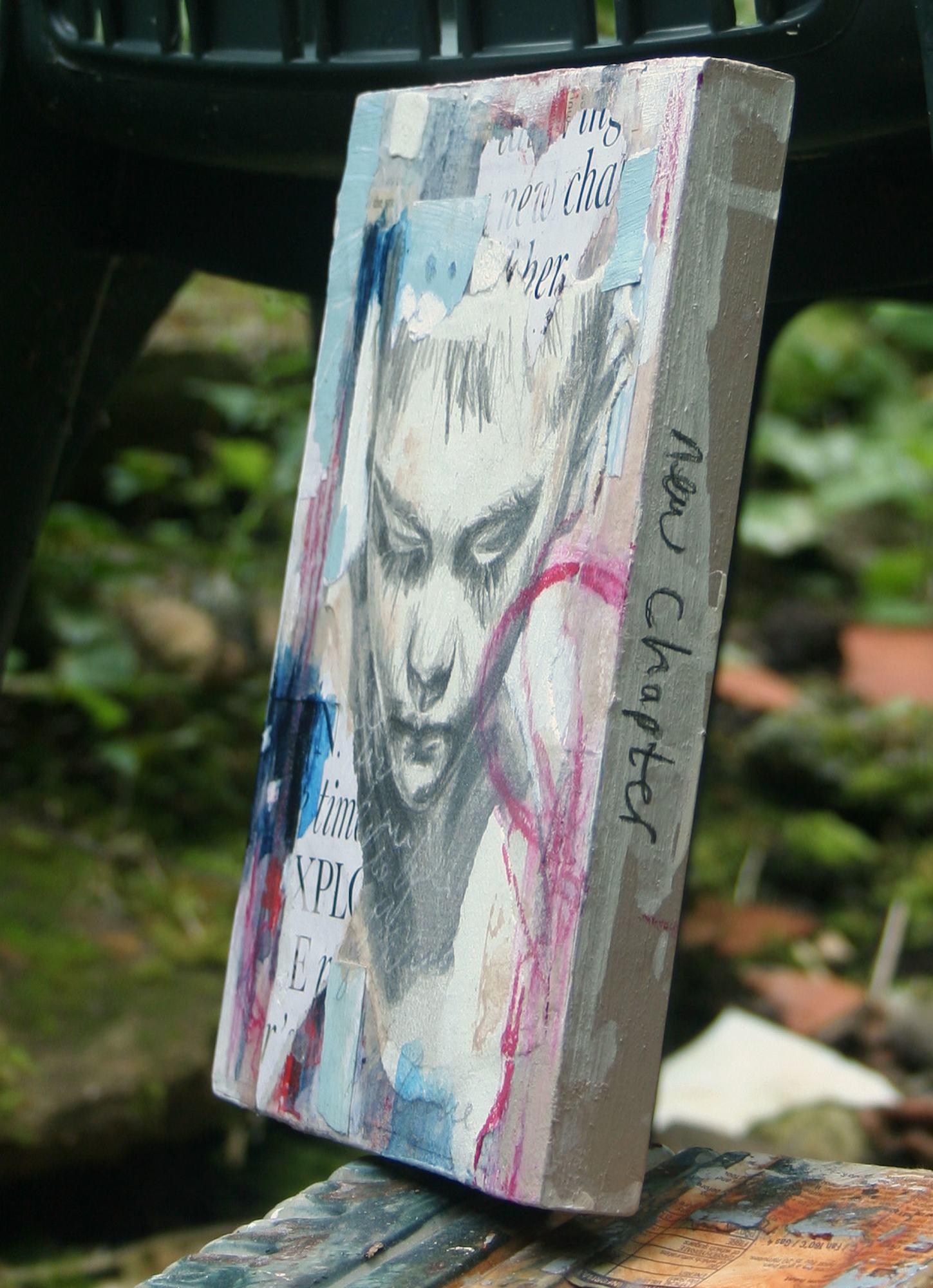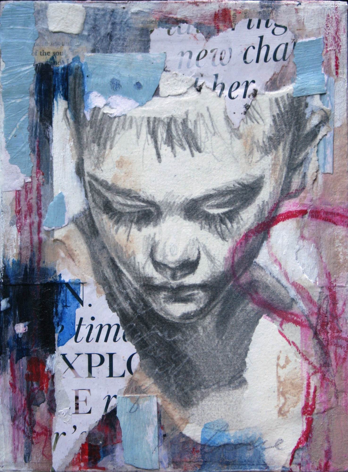 Pencil, Acrylic, Collage and Oil Pastel on wood.