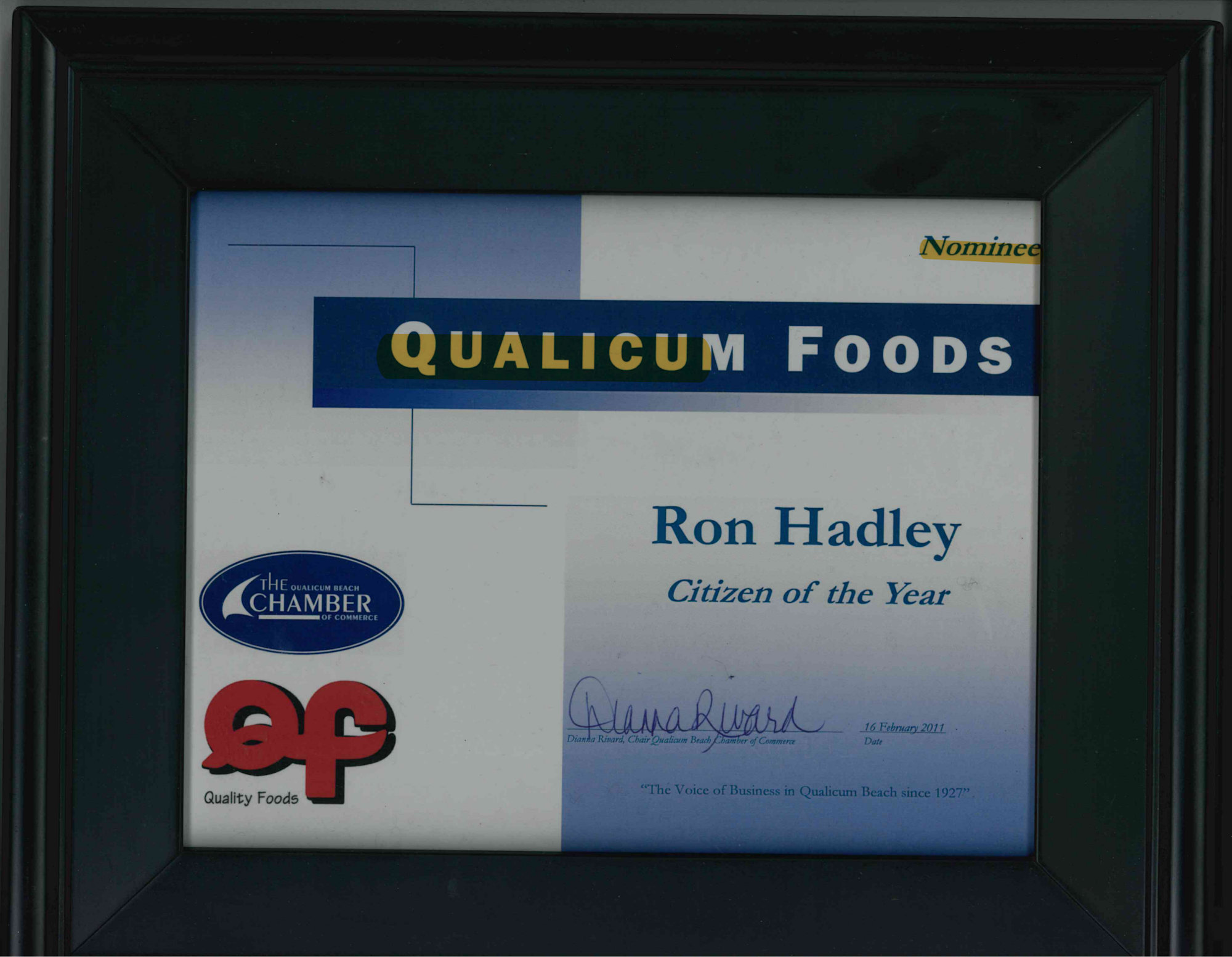 Citizen of the Year Plaque - Ron Hadley