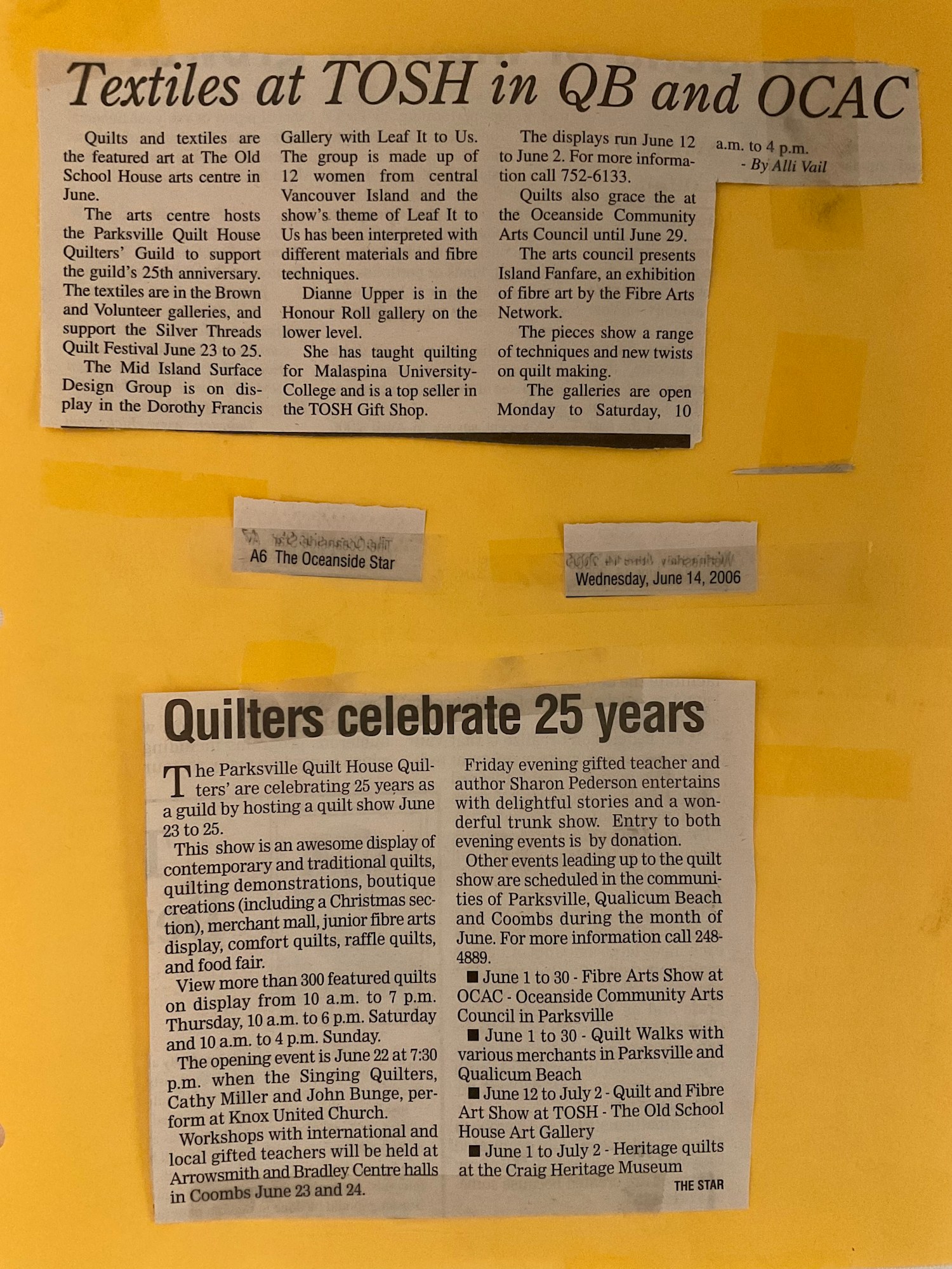Quilt events this weekend / Textiles at TOSH in QB and OCAC / Quilters celebrate 25 years