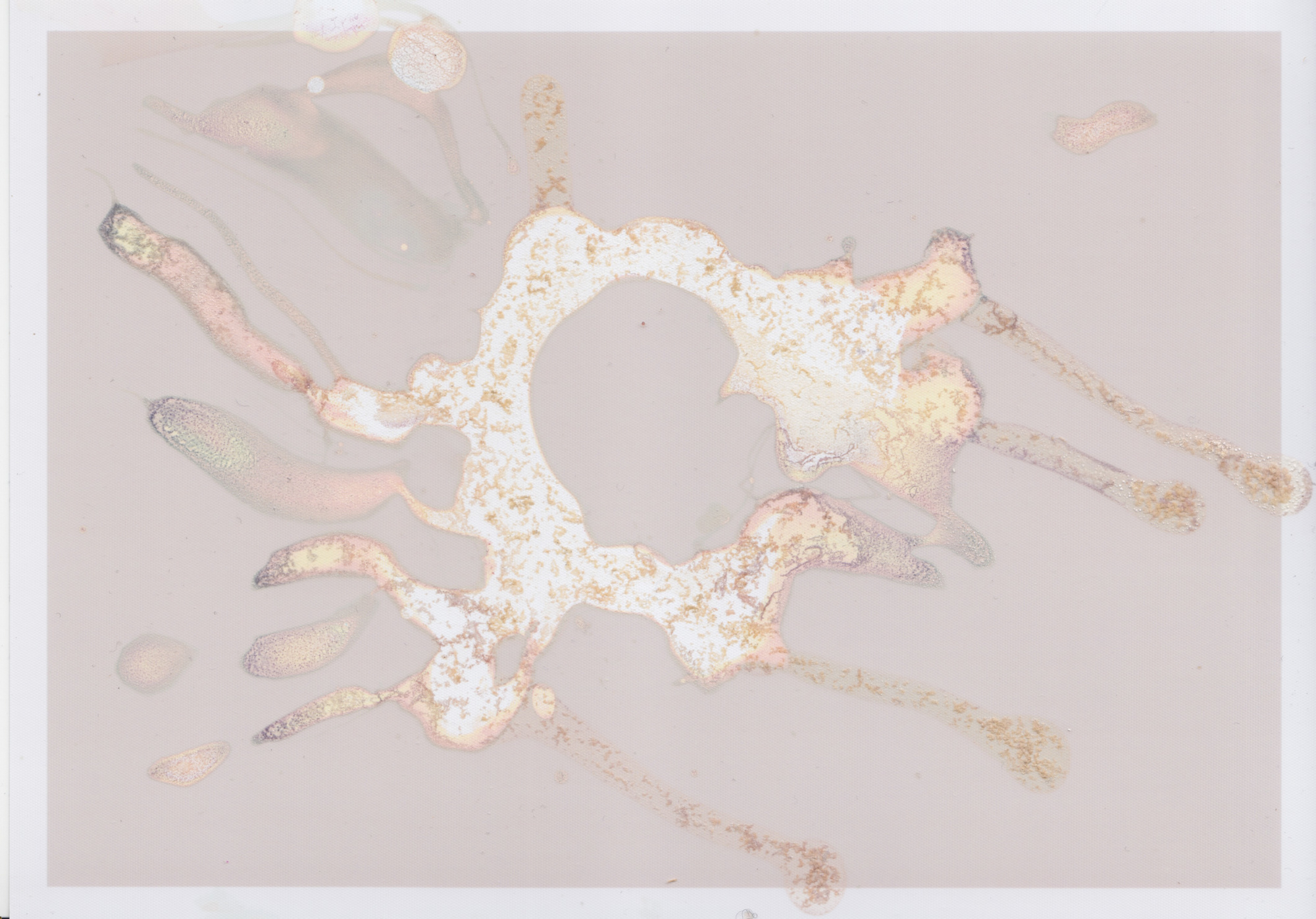 Deep Surface is a continuing philosophical enquiry into skin – its physical and particular qualities and its cultural signification. Skin holds a wealth of information and performs a physical balancing act. In this sense the surface holds depth. The photographs are the nearest Pantone colour to my skin tone. A household chemical is applied to the surface, gradually the corrosion reveals the complex and ‘acting out’ layers. The Deep Surface series have a light grey passepartout and a silver aluminium frame with anti reflection and UV protection glass.