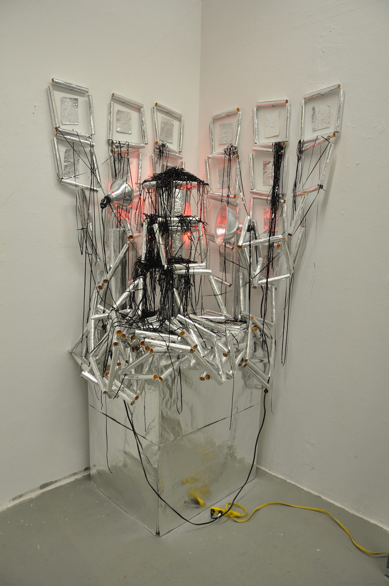 "Entanglement" sculpture, 120x24x48" 2010 This sculpture installation showcase the complexity of repurposed materials to bring forth connections and entanglement between layers of relationships that can coexist, function or slowly not be sustainable.