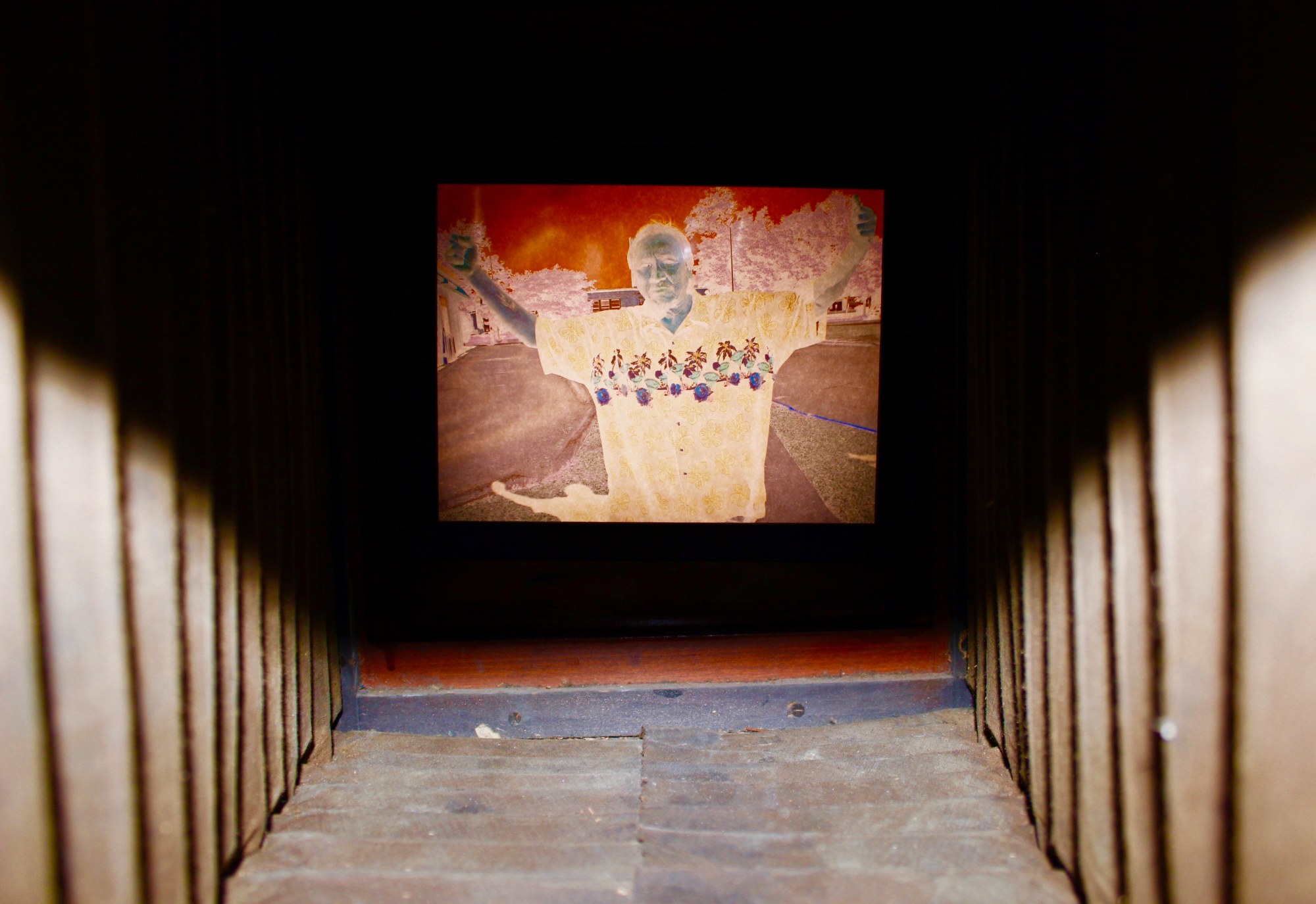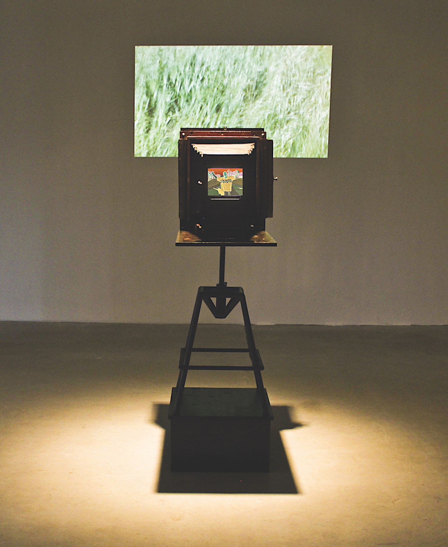 large-format camera, photographic negative on transparency, video, sound, and prose