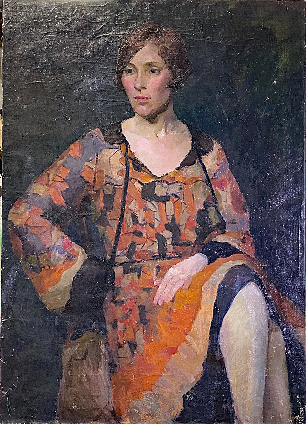 Seated Woman in Fall Colored Dress