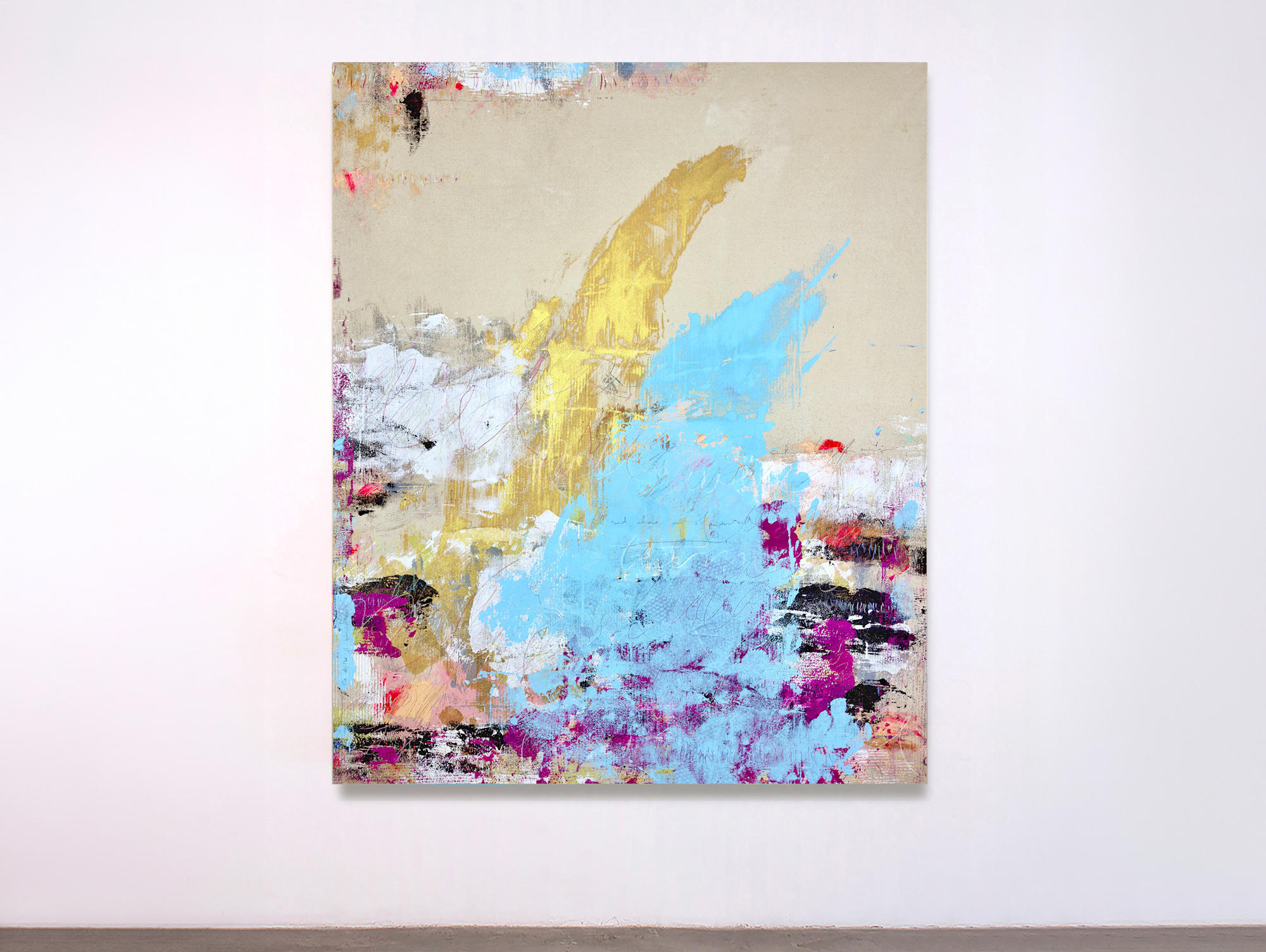 • Acrylic, graphite, oil stick, conte crayon on canvas.