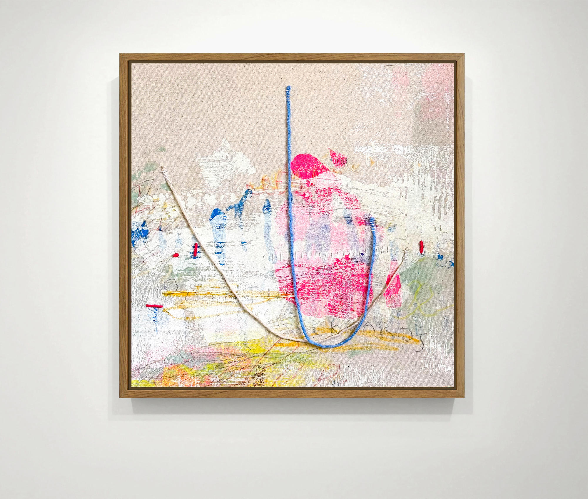 • acrylic, pastel pencil, oil stick, thread and yarn on canvas