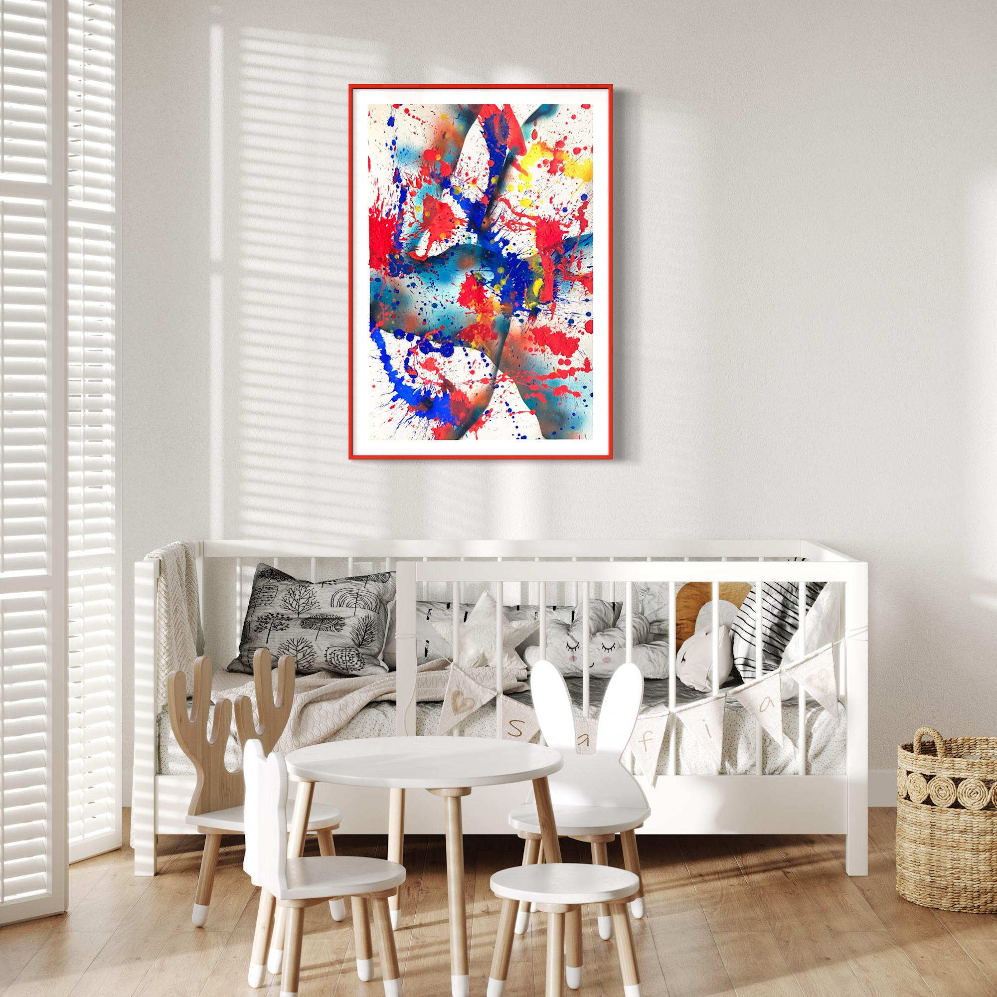 « My Inner Child » est une peinture abstraite débordant de couleurs vives, mélangeant des teintes éclatantes dans une harmonie dynamique et chaotique. Des tourbillons de rouges, de bleus et de jaunes dansent sur la toile, évoquant un sentiment de liberté ludique et de créativité débridée. En la contemplant, l'observateur pourrait ressentir un lien nostalgique avec sa propre enfance, une période d'innocence et d'imagination débordante. L'énergie vive et les motifs fantaisistes de la peinture invitent les spectateurs à renouer avec leur joie et leur curiosité intérieures, suscitant un sentiment d'émerveillement et de libération émotionnelle, comme s'ils étaient brièvement transportés vers une période de leur vie plus simple et plus joyeuse.