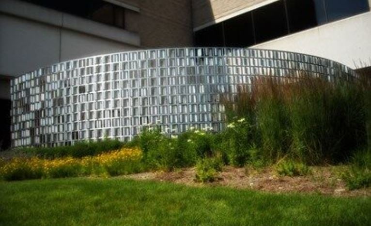 Hollis – an Ann Arbor native and University of Michigan alumnus – described the piece as a “kinetic screen.” Located outside of the hospital’s main entrance, the sculpture is made entirely of stainless steel and contains rotating components that spin in the wind. Hollis explained that wind, water and motion are the main elements of his artistic vocabulary. The university commissioned the sculpture, called “Rotations,” to honor the memory of the University of Michigan Medical Center transplant team who died when their plane crashed into Lake Michigan in June 2007.