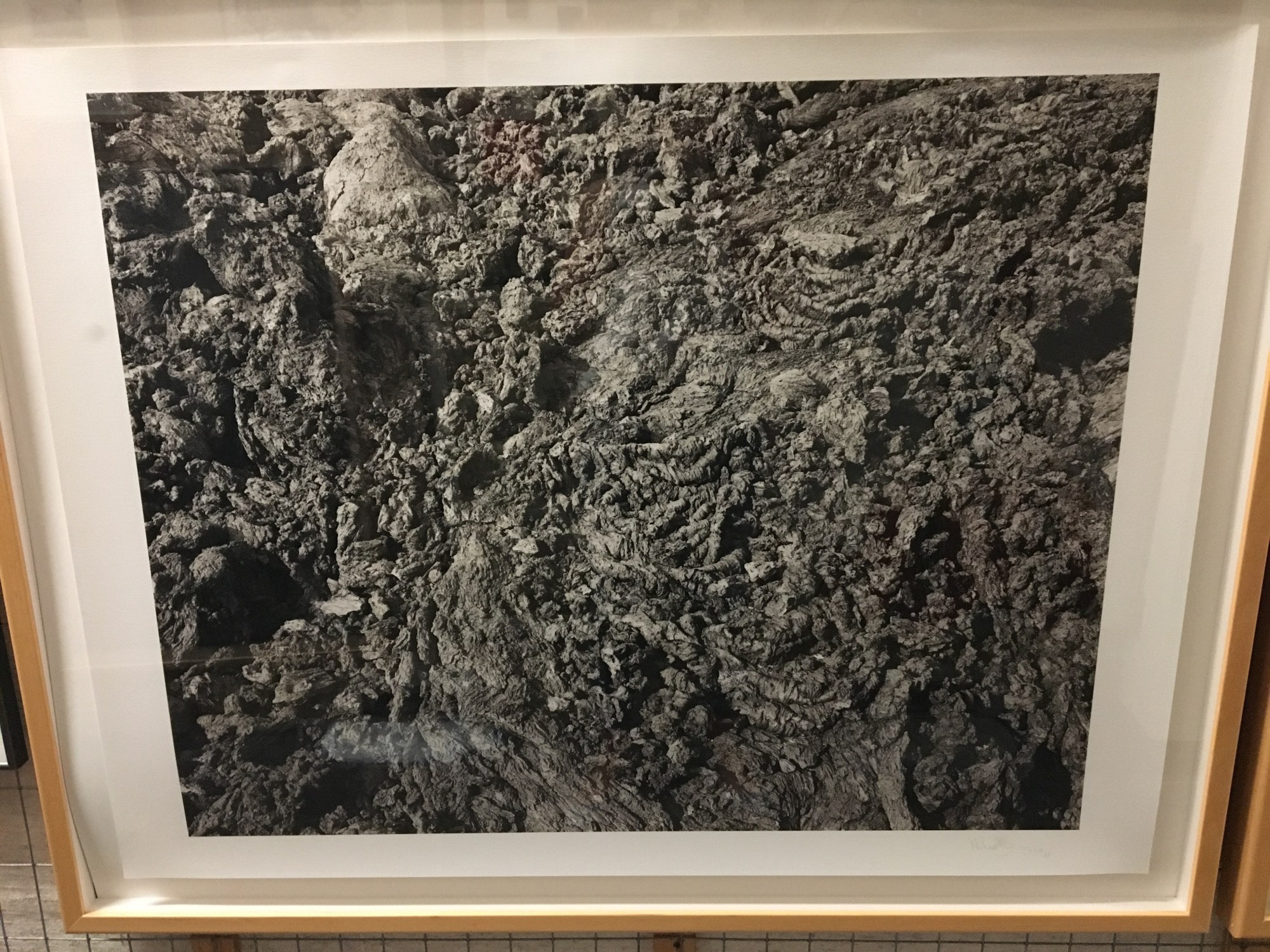 Black-and-white close-up photograph expressing the jagged an dry texture of a lava field.