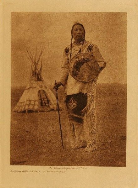 A restrike print from copyright photograph 1926 by Edward S. Curtis' photograph, Akatsim-atsissi “Whistle Smoke” - Piegan.