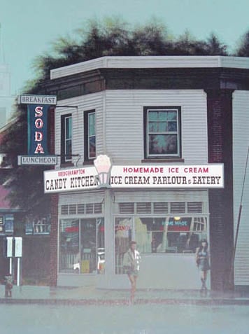 Bridgehampton Candy Kitchen Homemade Ice Cream Store. Two women in skirts are standing outside.