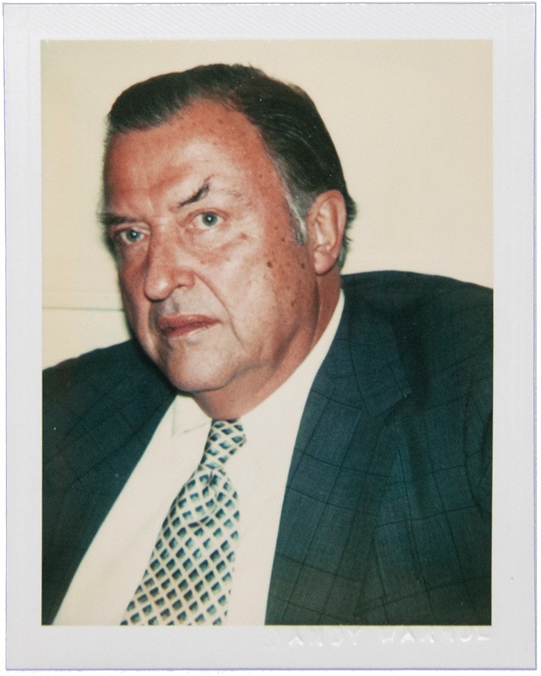 3/4 bust portrait of art patron and second chairman of the Birmingham Museum of Art board, Charles Ireland, He is wearing a cool toned blue suit white shirt and tie with a blue diamond pattern on it. He is set against a solid off-white background.