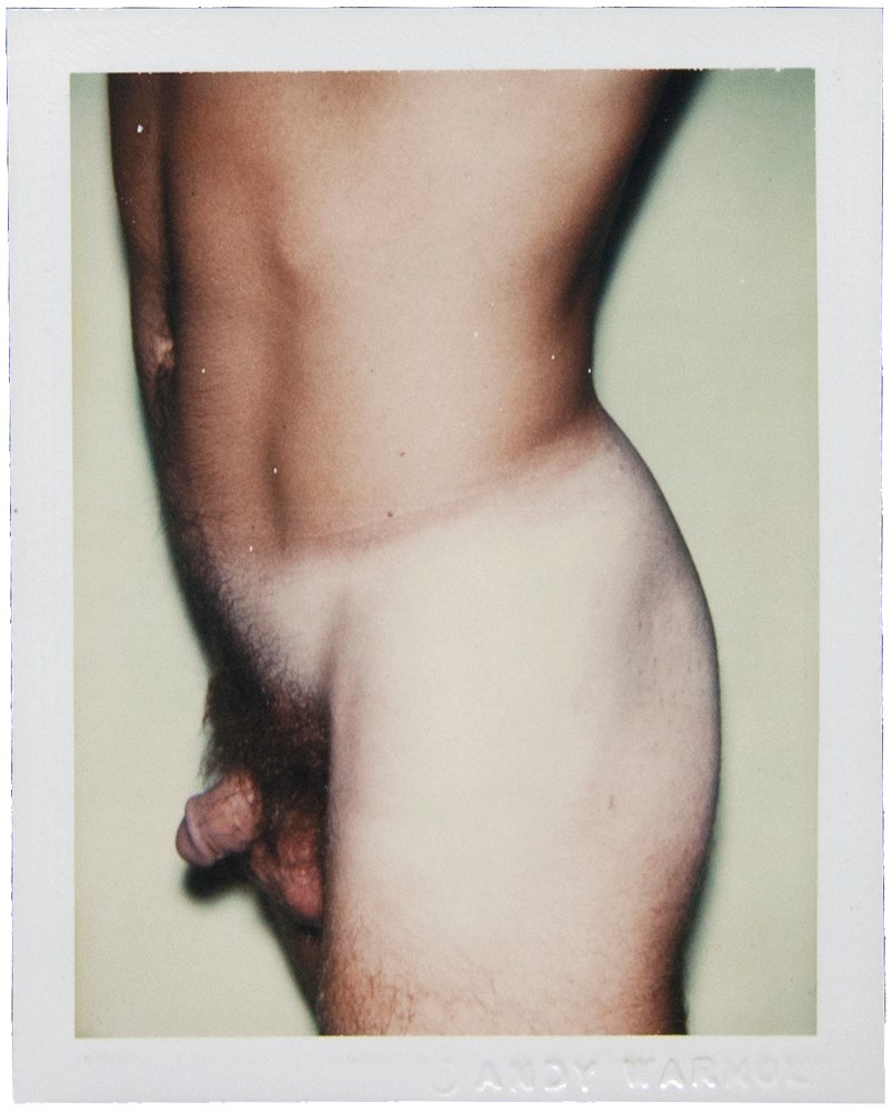 3/4 portrait of a nude male. He is framed from mid abdomen to his upper thigh. He is turned to his right, viewer's left. He is set against a solid off-white background.