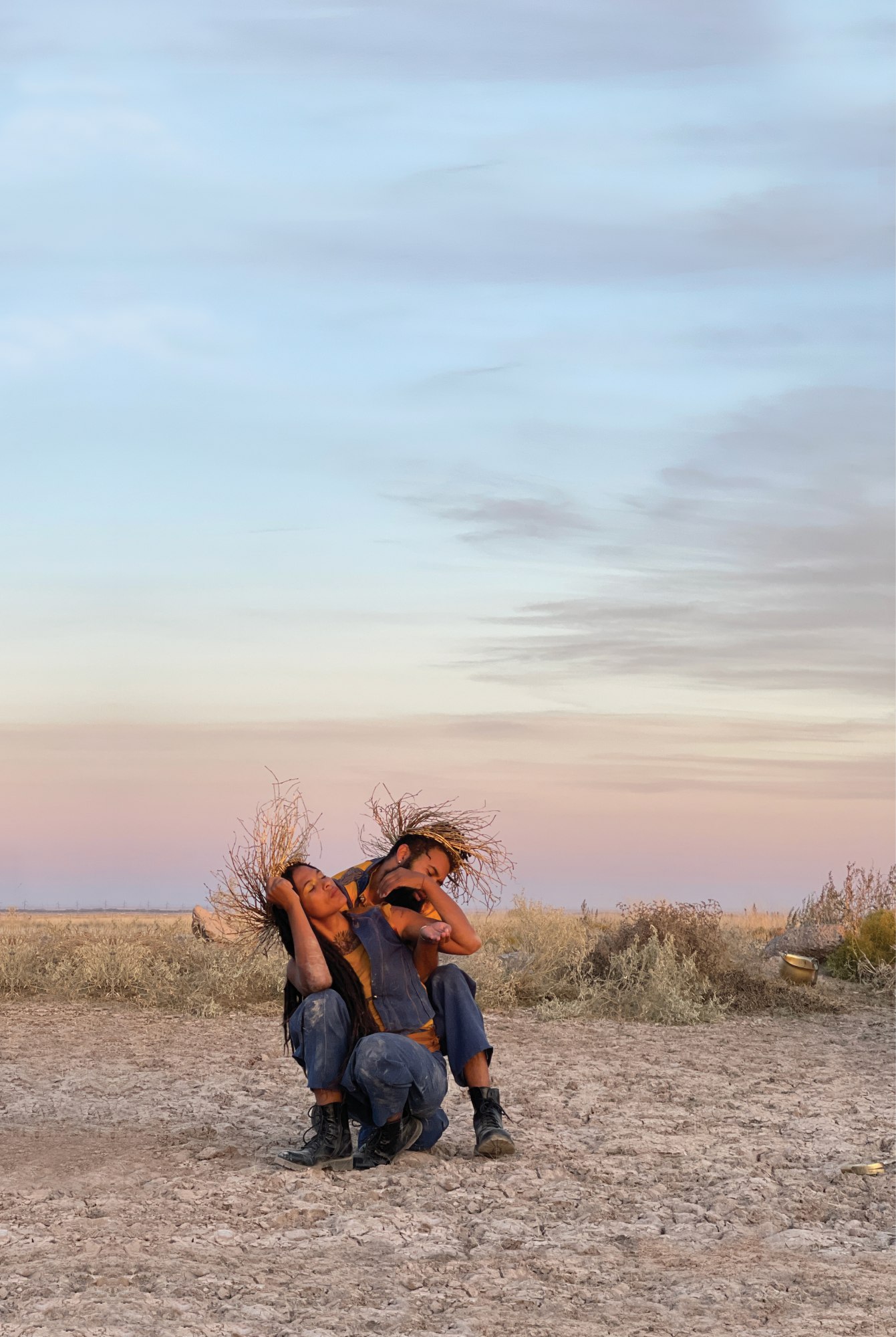 This project is composed of an ongoing series of durational performances and ritualized, elongated mourning rites choreographed and orchestrated by performers Nikesha Breeze, Miles Tokunow, Lazarus Nance Letcher and cinematographer, MK. Stages of Tectonic Blackness: Blackdom, was physically performed in November 2021 and is conceptually centered on the early 20th century Black freedom town called Blackdom. Founded in 1902 and abandoned by the mid-20’s, Blackdom was created as a “Black-utopia” focused on Black freedom, land stewardship and education.