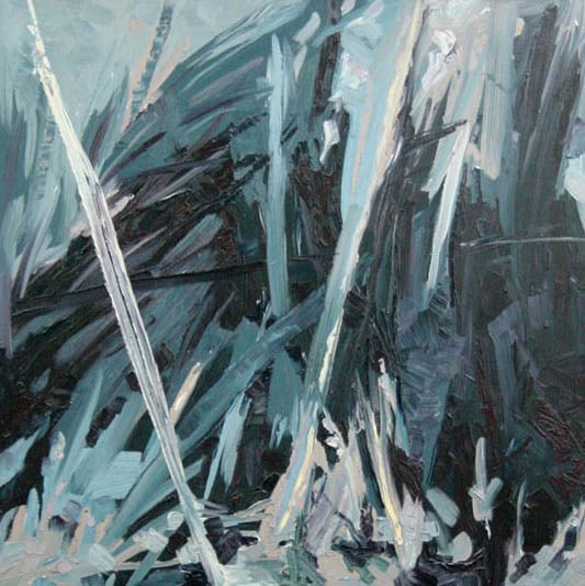 Abstract Expression: vertical brushstrokes of black, white, and shades of blue.