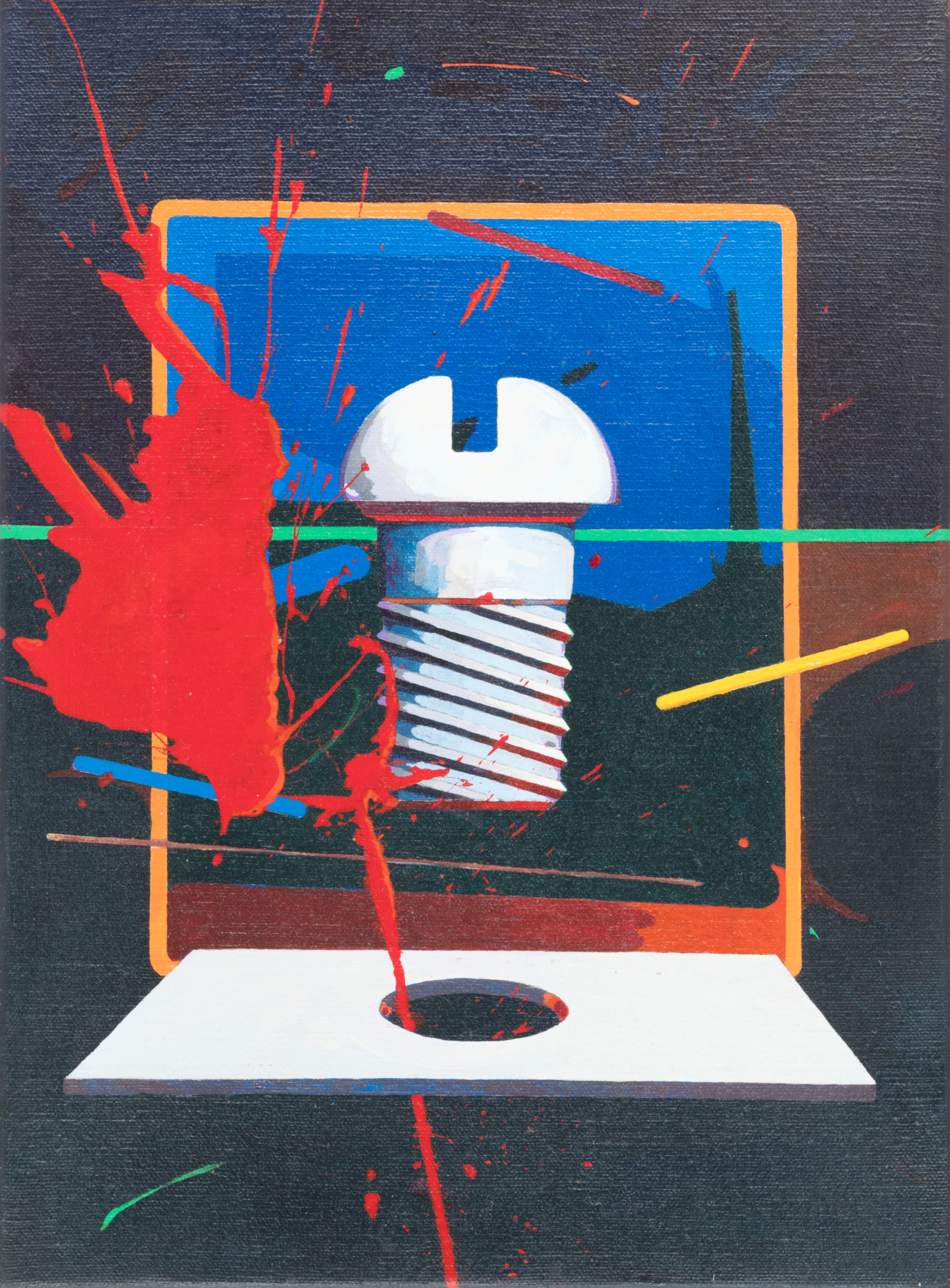 - Signature: Verso top edge in pencil: "WOUNDED BOLT" MCDOWELL 1981 Acrylic 15" x 11"