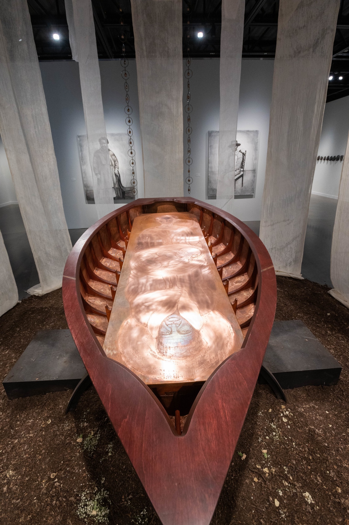 - Baltic birch, hand-etched copper plates, copper mesh